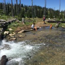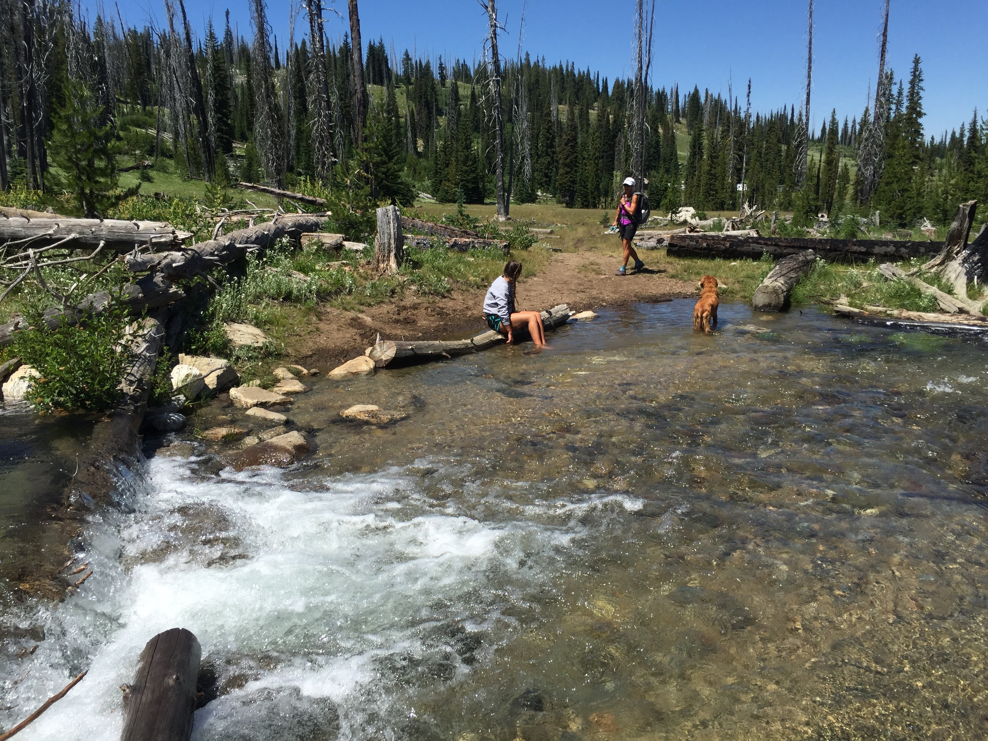 At the start of the trail you will cross a couple of streams.  This is great for our dog to get a drink and cool down in.  No other water higher up on the trail, but there have been a few remaining snow patches on my two summit activations.  Crossing the streams is easy with plenty of big logs to walk across.
