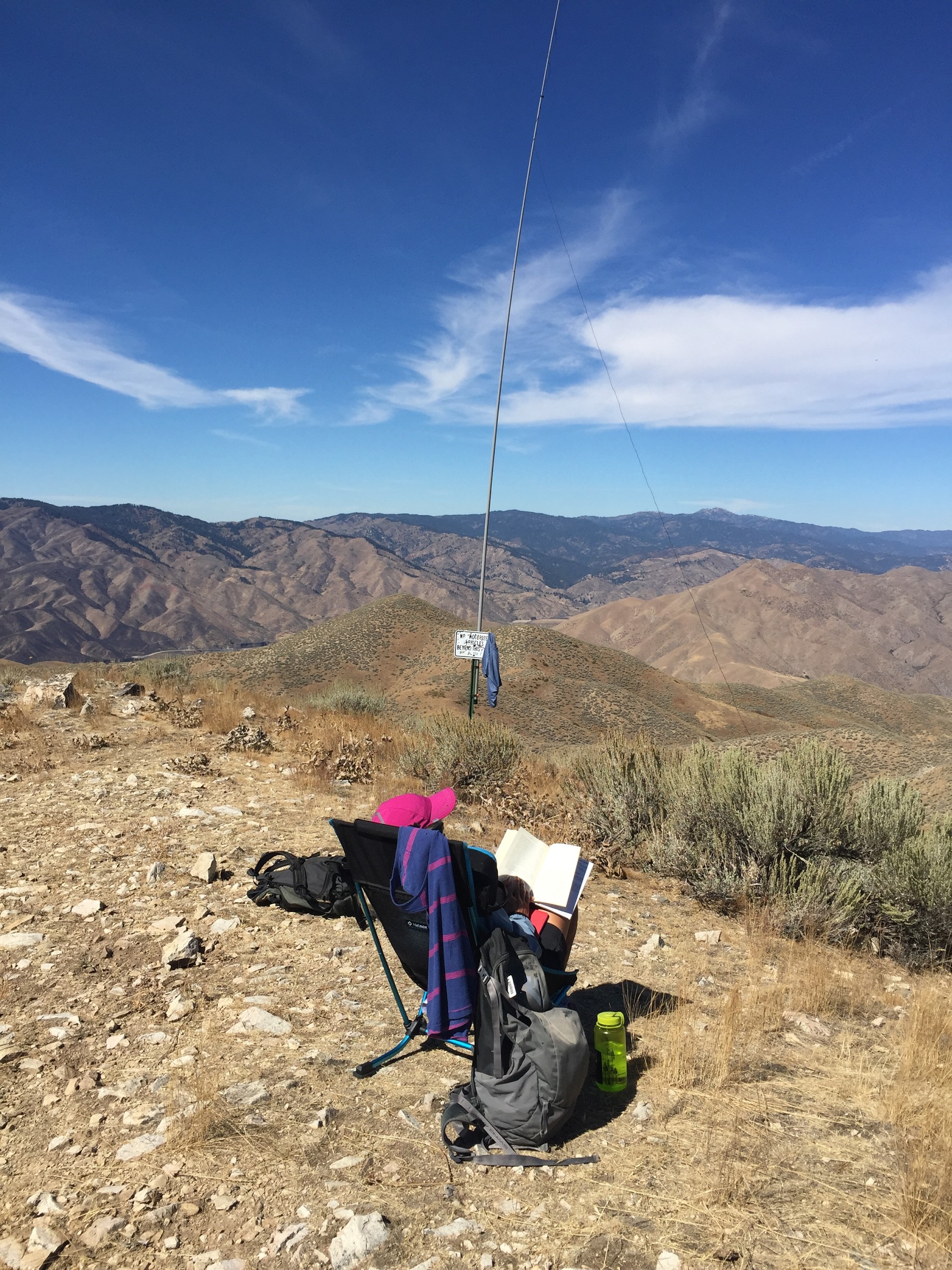 9.6 miles and 1812ft of climbing. There is a signpost at the top which makes it easy to strap a pole to. Cell service is good on the Boise side of the peak (AT&T and Verizon). APRS should be good as well as you have a good view across the valley to the digipeater.