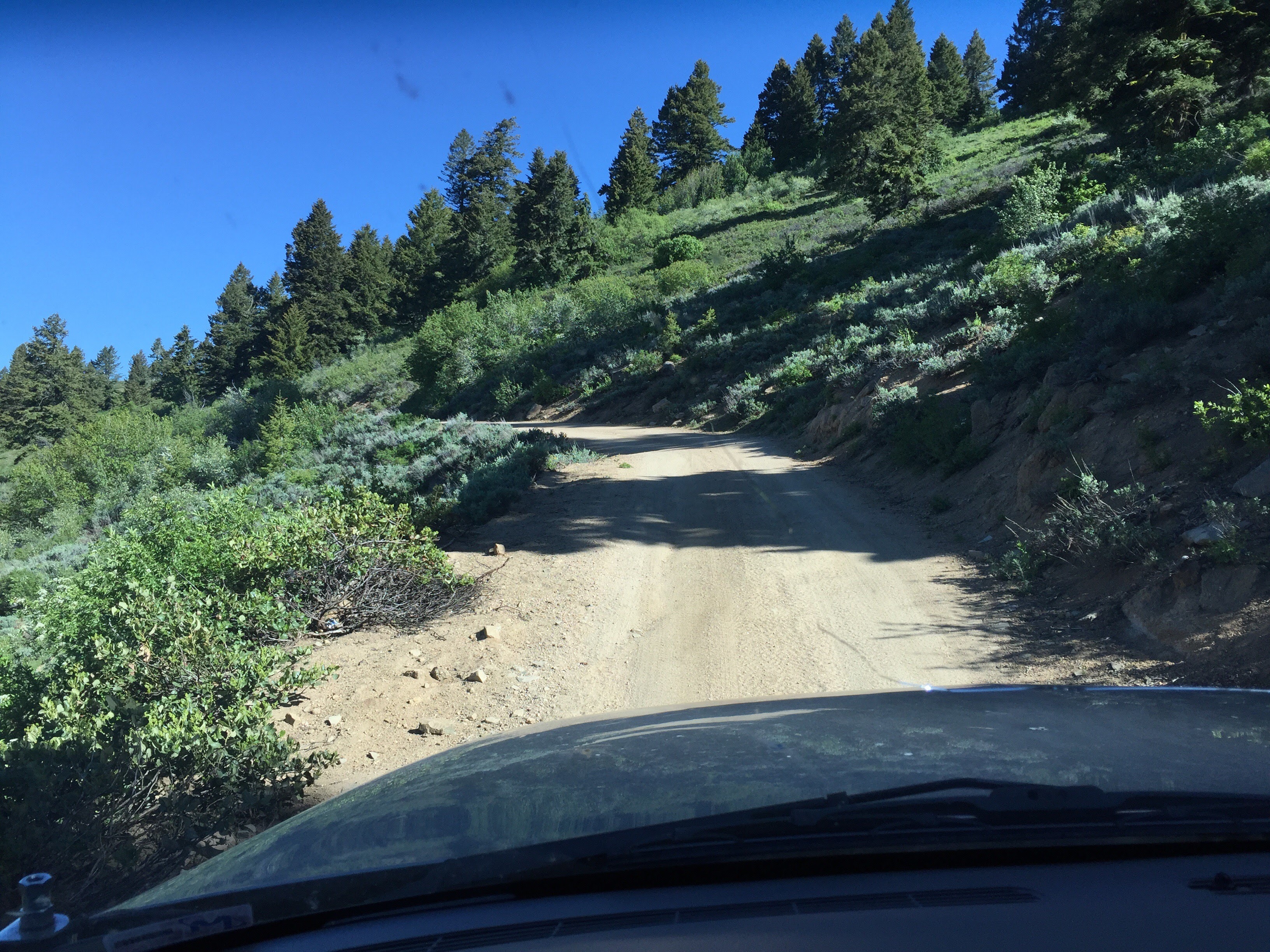 At the base of Peak 7057, where a trail/road heads up to the summit, there are a couple of parking/camp sites where you can leave your rig off the main road.  The trail/road leading up to the summit starts off as a steep/rocky rut.  Best to hike up this, but could be passable with 4-wheeler, RZR, etc or someone adventurous in an equipped Jeep.  About half way to the summit the rut ends and the road becomes easier to navigate.