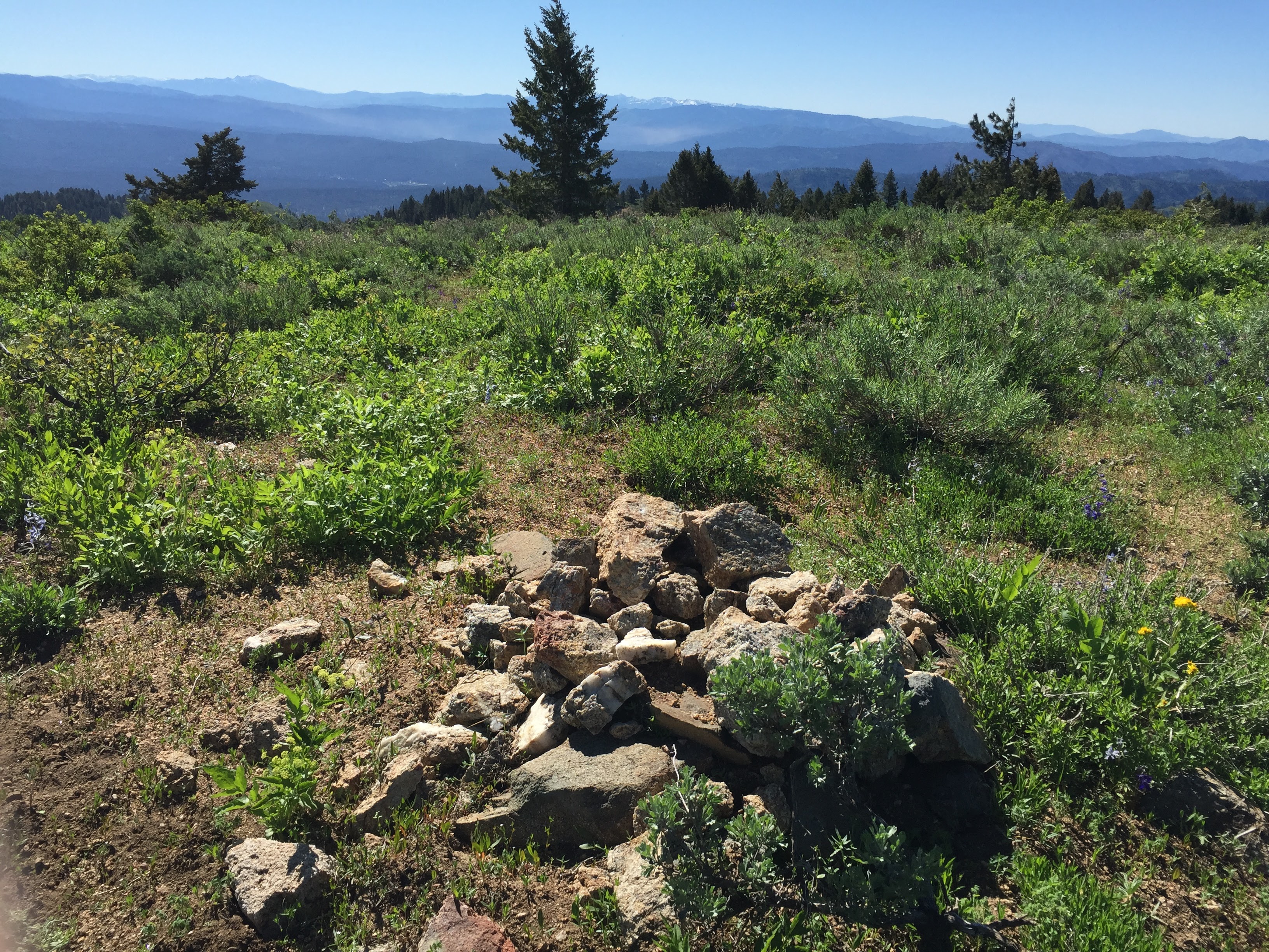 Peak 7057 is the first peak along the FS374 ridgeline north of the Harris Creek Summit.  The second peak is Hawley Mountain (W7I/BC-069). Harris Creek Summit (saddle) can be reached from Harris Creek Rd. which connects Horseshoe Bend and Placerville, Idaho.  It is a dirt road in good condition.  From Harris Creek summit, FS374 is a resonably good single track road.  SUV or other high clearance vehicle recommmended, but I did see a sedan parked at the base of Peak 7057!  Minor rocks and ruts along the road so should be passable by most cars/trucks depending on your level of scraping desired.