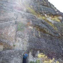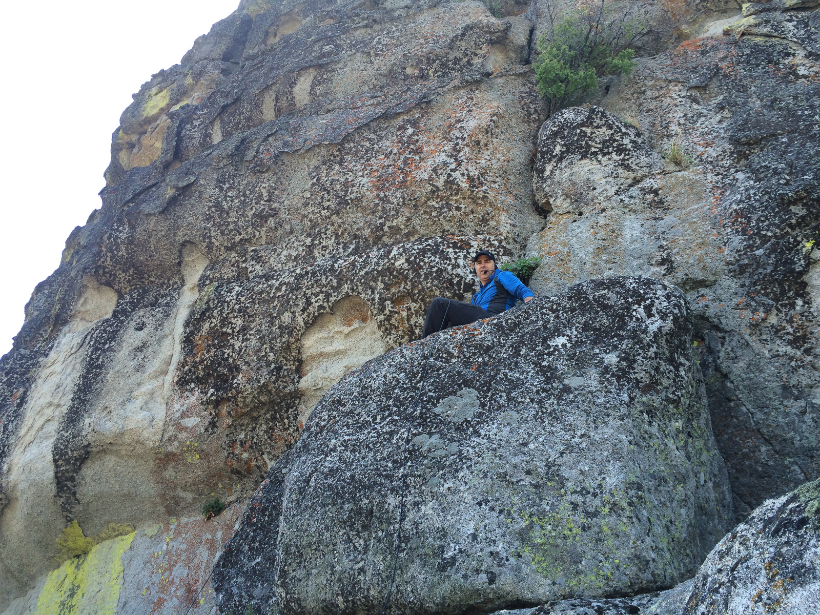 In the end, for a climber or confident scrambler, the activation may be easier/faster by climbing half way up the scramble route and setting up your rig.  However, the north side is available for activators that don't want to test their downclimbing skills.  We followed a faint trail around the east side of the rock to get to the shoulder on the north side.