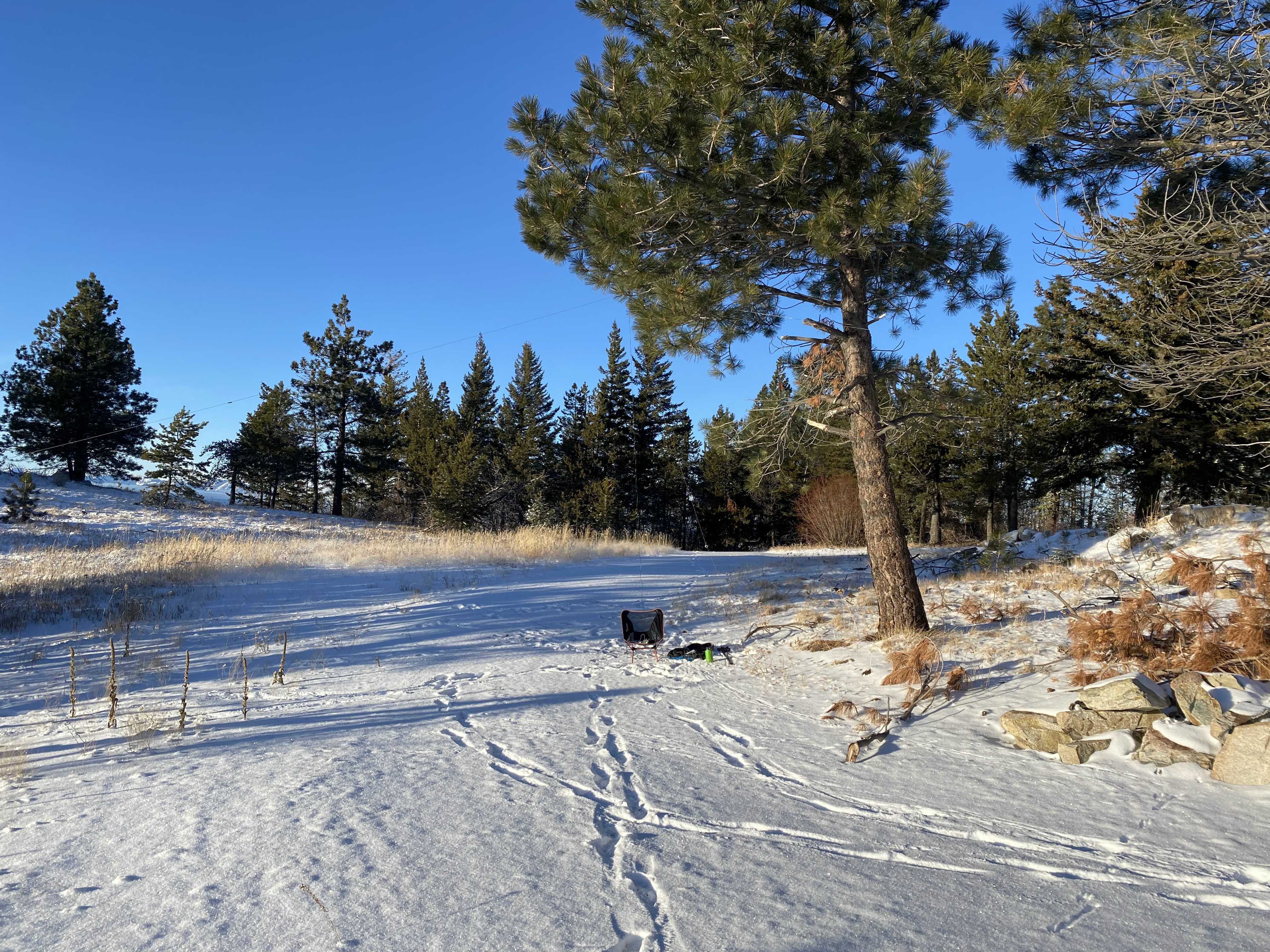 I completed the first-ever activation of Goat Mountain (not to be confused with Goat Peak, W7W/OK-107 or other Goat Mountains in W7W) today. The summit is a communications site, so in the summer it's likely possible to drive all the way up. There were no closed gates or signs that would indicate that public access is limited, though the last stretch of road is in bad condition with several trees blocking it.