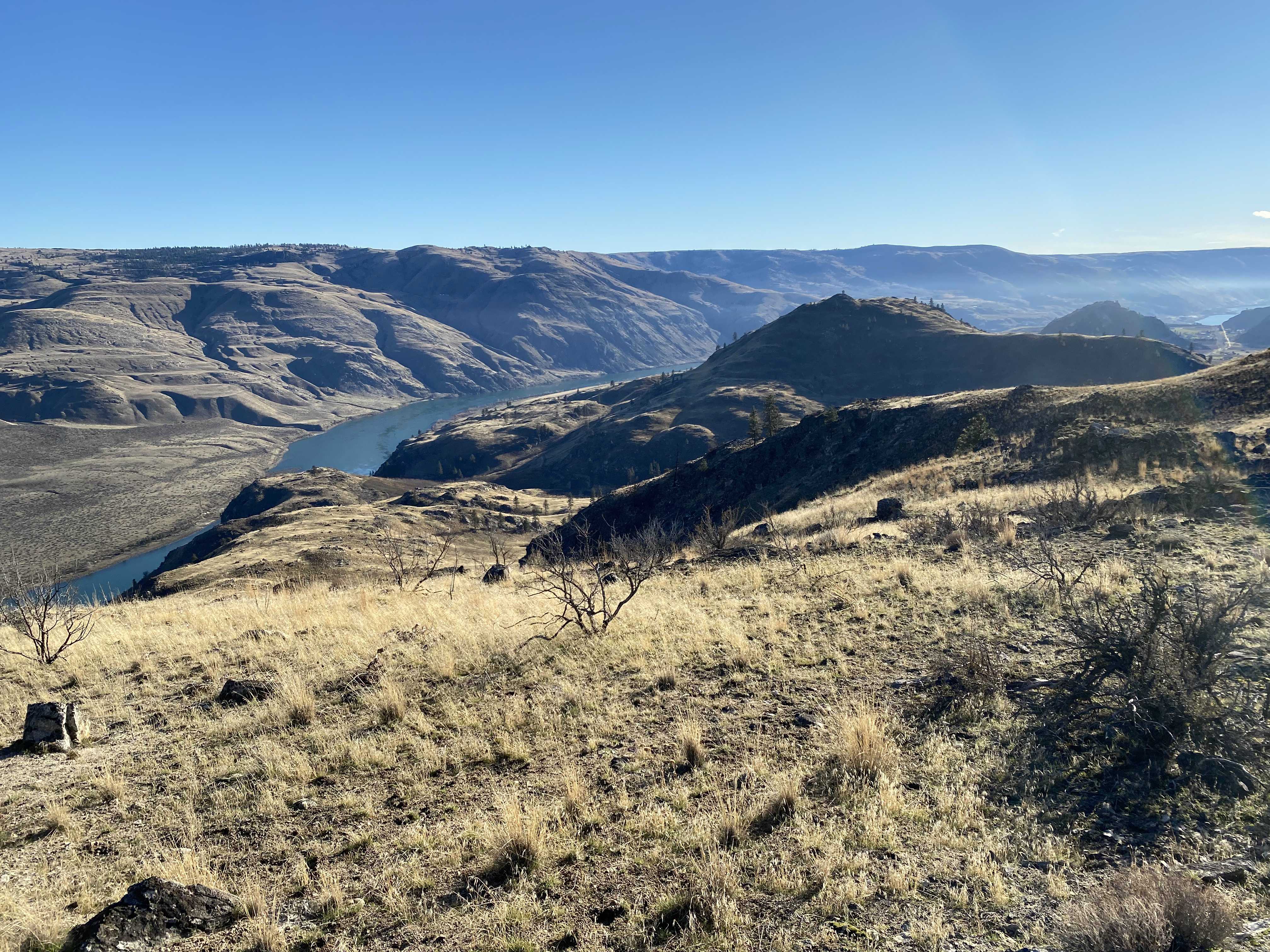 I parked at around (47.91633, -119.93011), on a wide spot of the gravel shoulder of Apple Acres Road. South of here, the terrain is very steep and would be very difficult to safely ascend. Fortunately, the ridge descends gradually from the peak northward until it reaches the road's elevation just east of here.