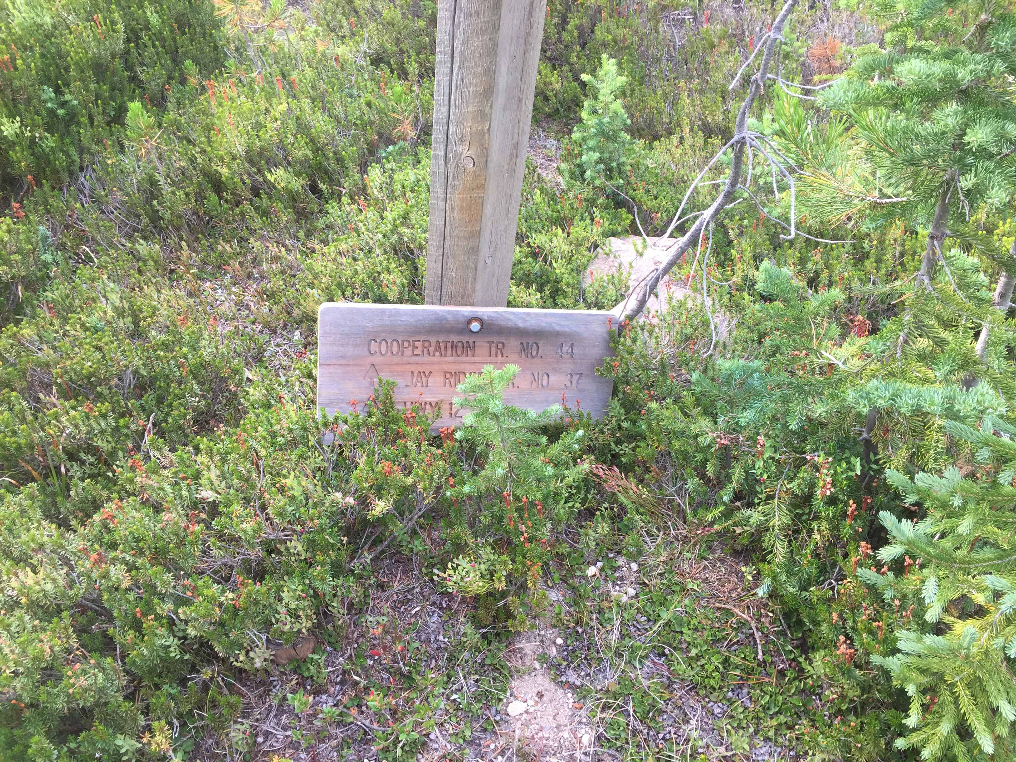 Three trails begin from this trail head and it is easy to get off on the wrong one.  The one you want is #44 to Jay Point and it a very eroded steep trail at the beginning.  It really needs to be relocated to a gentler climbing grade to the south side of the hill and tie into the ridge trail above.  The trail sign was on the ground when I visited, I missed it and I began on the wrong trail.