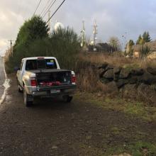 Long Version - Mount Scott is a roadside activation of no particular distinction. The actual summit is on private property festooned with microwave and VHF/UHF towers. Nearby is KKPZ with two AM towers and a number of VHF/UHF antennas. There is room for two vehicles to pull off the road in the AZ at the corner of SE Ridgeway and SE Eastview.