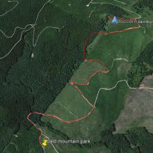 From here you will hike up the road for about 2 miles, after that you will have to go off trail and move up to come back to the summit road. roughy 2.25 miles to summit.
