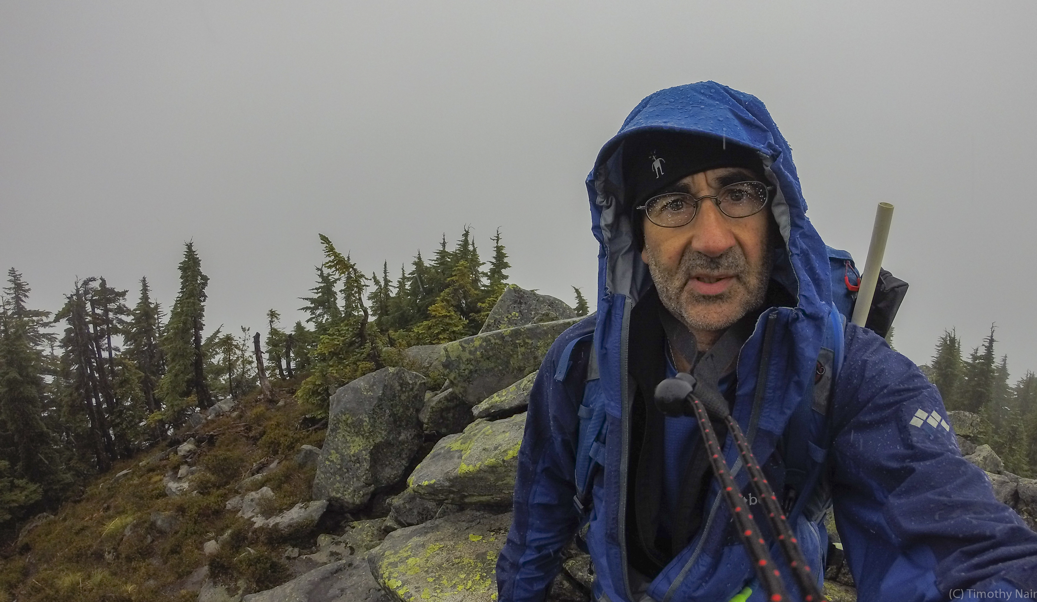 There were only a few cars parked in the parking area when I arrived at about 10:15AM. The first 0.7 miles follows an old logging / mining road, gaining a few hundred feet. At about 0.7 miles along the road, just past a sharp switchback, an obvious trail veers off to the southeast. I took a photo of the turn-off for the trail -it follows the ridge all the way to the summit. The trail is relatively steep, gaining about 2750 feet of elevation in about 1.8 miles. There are 2 places on the upper sections of the trail where it was difficult to "see" the trail as it crosses boulder fields. I ended-up do some unnecessary "bouldering" on the way up, but found the trail more easily on the descent and followed it all the way back down the ridge. It took me 1.5 hours to ascend, slowed by the 2 boulder fields...Descent took 45 minutes back to the trailhead. On the ascent, about several hundred feet below the summit, it started raining heavily and the wind picked-up. The summit was cold, wet and zero views. I've seen WTA trip reports from the summit taken on clear days, so I know the view could be spectacular!
