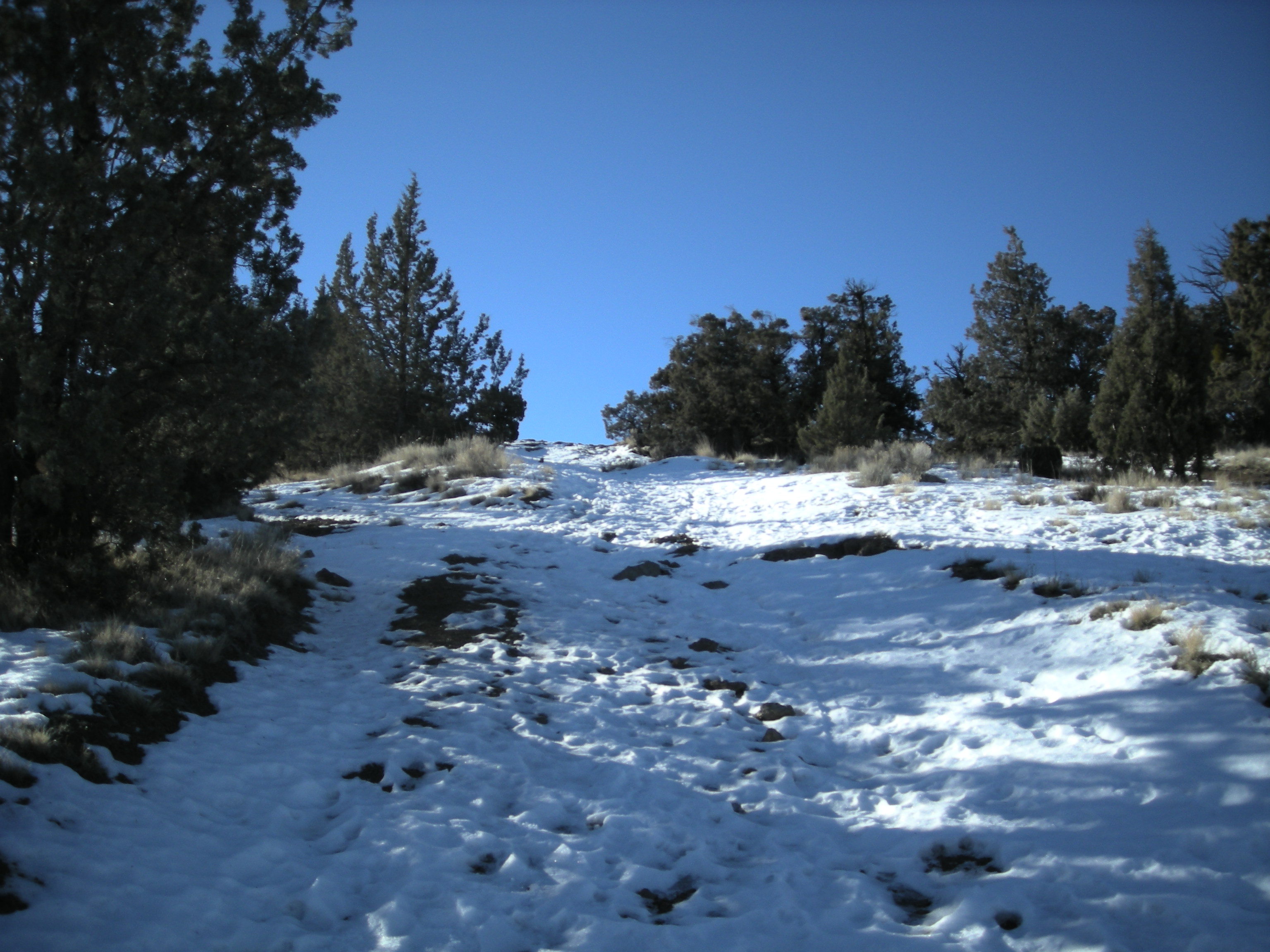Spent the weekend at Eagle Crest just outside Redmond, Oregon and decided to activate Cline Butte which is nearby on MLK Day. Left the trailhead at 08:00 with very cold (25 degrees) clear conditions with patches of snow on the ground. Followed a road most of the way to the top then cut off on a jeep trail the remainder of the way. Trip up is a little less than a mile with a 800 ft elevation gain. I added a map from Google Earth with the route I took up.