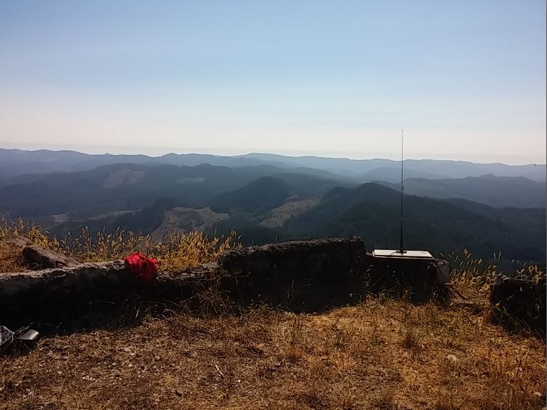 This summit had never been activated and I now know why! The USGS maps would have you believe there is a road to the summit. There actually was a road when the forestry lookout was standing, but the last 1-1/2 miles of road is now overgrown and would take some guts and a great off-road 4-wheeler to traverse it. These same last miles are steep and unrelenting, though completely forested. When the so-called road ends. there are a few hundred feet of vertical trail required to reach the summt.