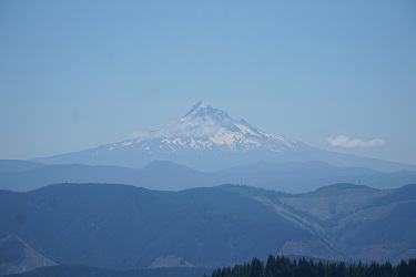 The summit is “open” to the south and provides nice views of Hood and Jefferson (it was a bit hazy in the distance). Views to the north are a bit obscured at the summit, though very nice along the road (St. Helens, Adams and Rainer). Set-up is easy with many smaller pines to Velcro masts and taller trees to throw wires.