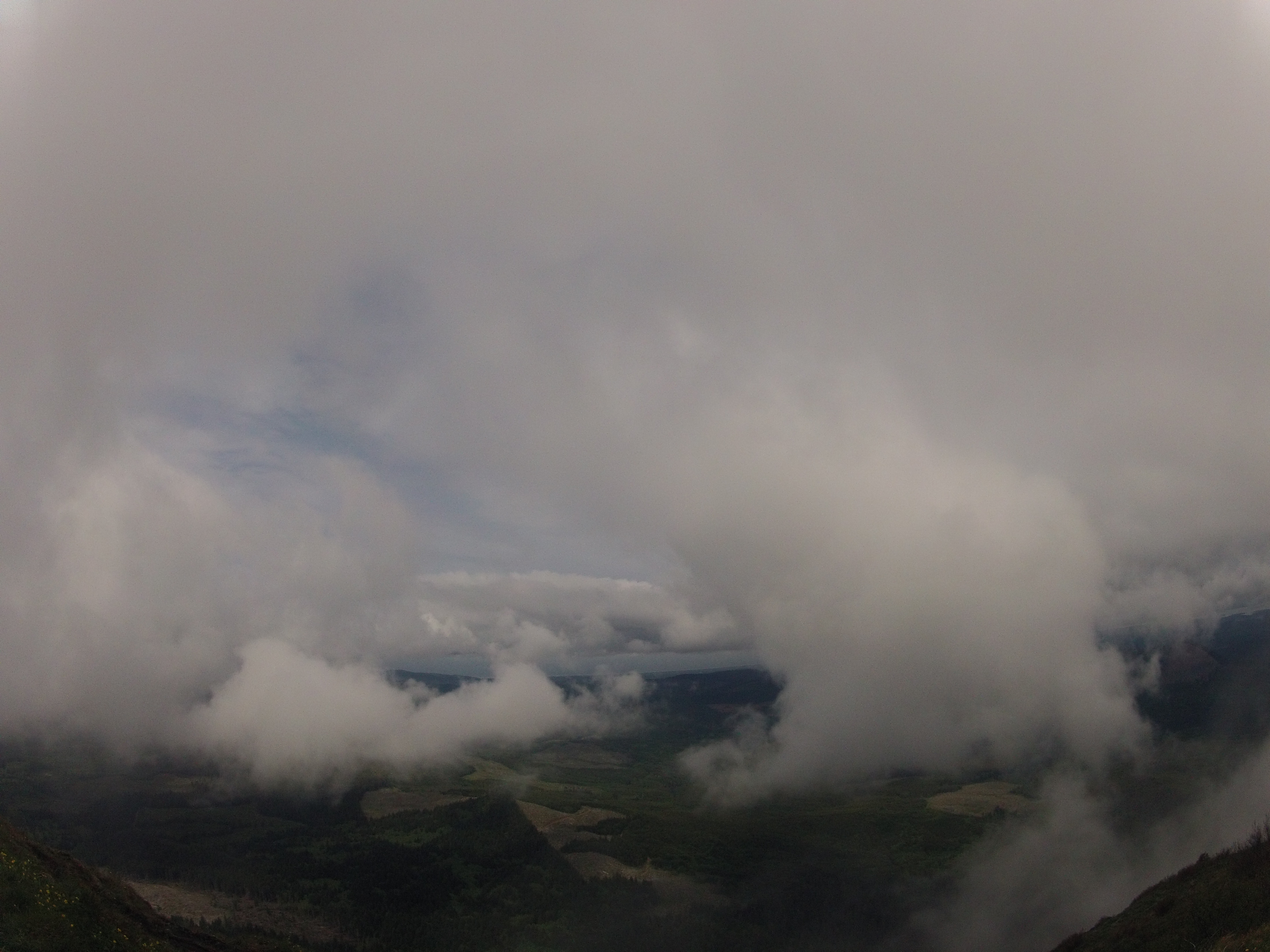 The summit has handrails around all four sides with no trees in the area. The view should be amazing if the weather is on your side. While I was at the top, the mouth of the Columbia was visible two or three times but for the most part the view was hidden in the clouds. I was able to string a homebrew 20m Dipole between two sides of the handrail, far from perfect but I was able to make contacts in NY, IN, UT, NM, and CA.