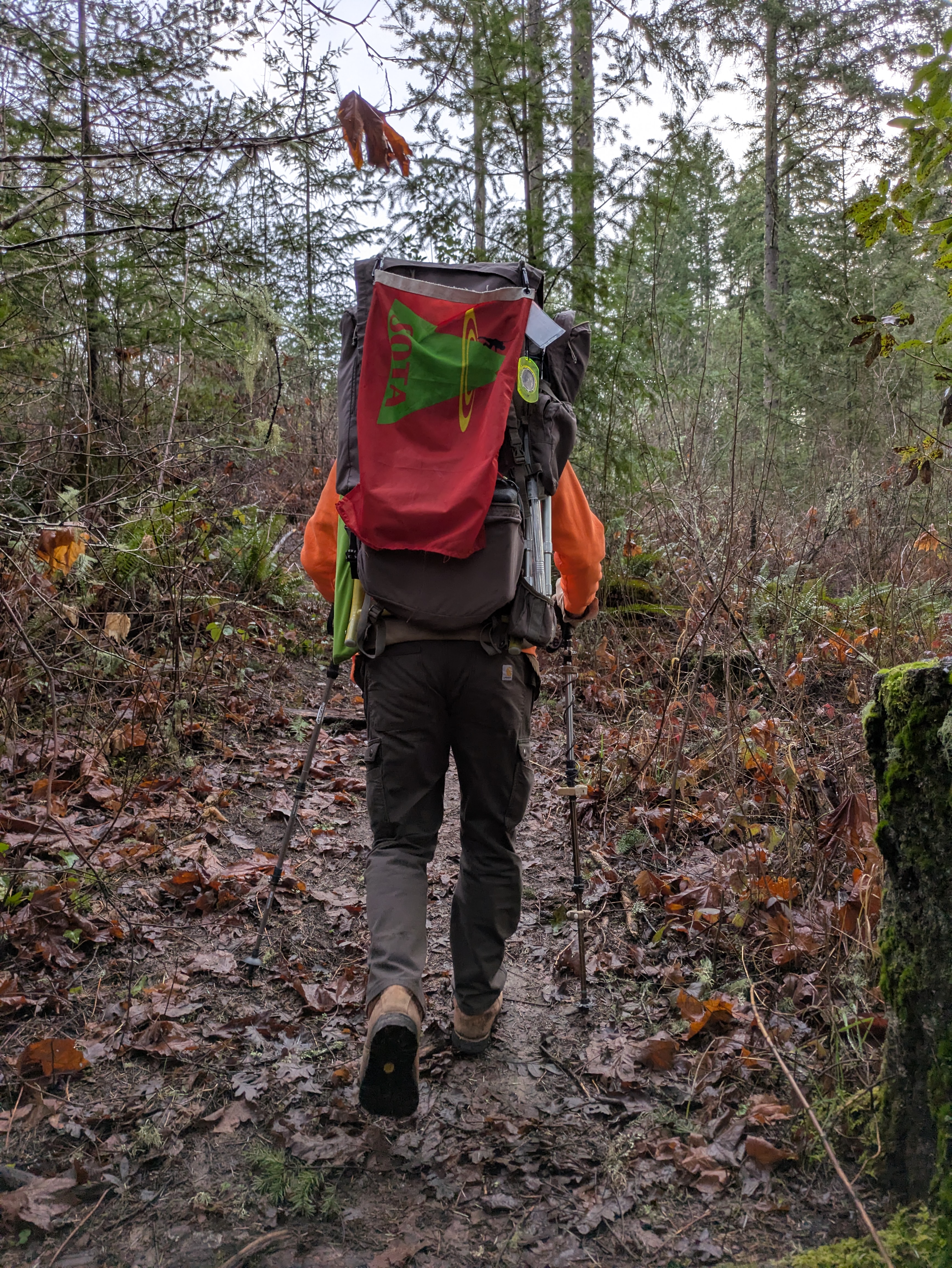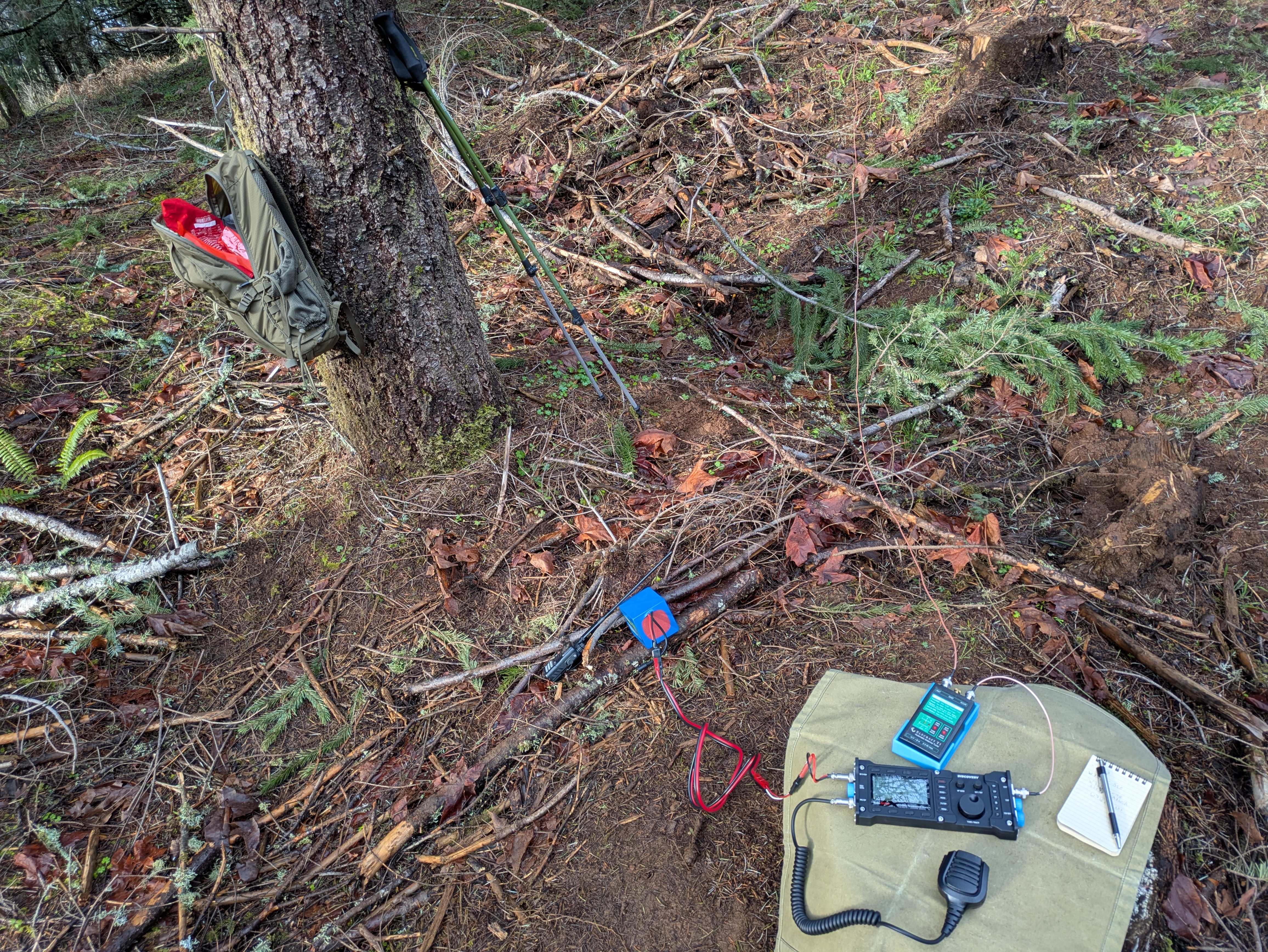We left Bill’s (WJ7WJ) house at 8 a.m. The trailhead is not marked. It’s on a bend in the road and starts with a steep hill. I borrowed trekking poles from Bill, which has inspired me to get a pair of my own. Some parts are steep, and it’s great to have upper-body assistance as you climb David Hill.