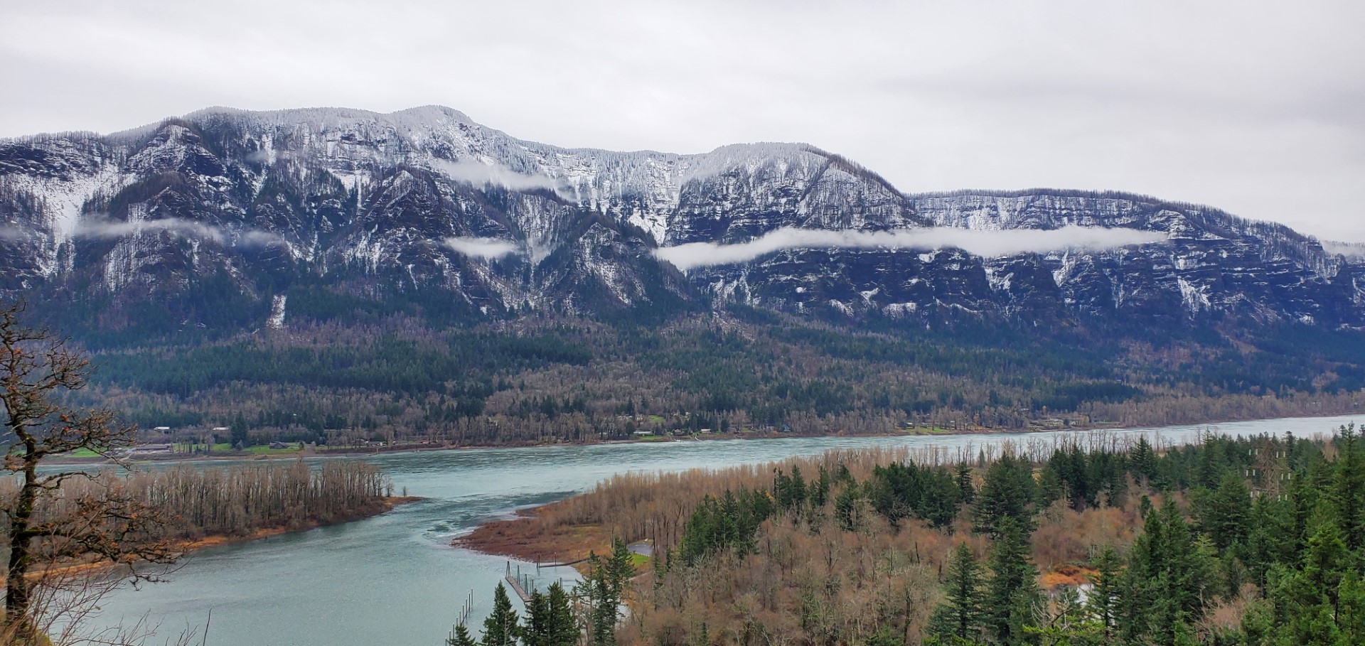 It was a nippy but dry day when KJ7UIZ and I headed out to activate several summits along the Washington side of the Columbia Gorge. We arrived at Beacon Rock State Park. It has two parking areas along Hwy 14, one across the road from the park service office, and one just to the east that flanks the rock climbing walls and has a restroom. Bring your hand warmers, as the water is COOOOOLD!!!