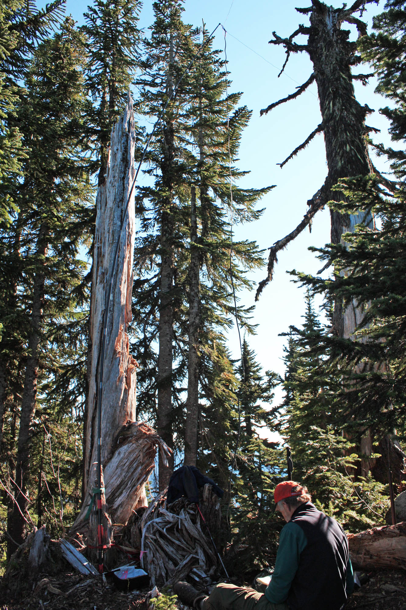 I was glad we stopped at this location because I could hear the group of young men who began their hike from the TH just before we did.  They were on the true summit being primal and un-stressing by making blood curdling animal sounds.  I wanted to walk over and tell them how ridiculous they sounded but instead I made 29 CW contacts on 7, 10, and 14 MHz as well as two difficult dot five two FM QSOs.    After 45 minutes we decided to pack up and leave because we were getting cold in the shade.