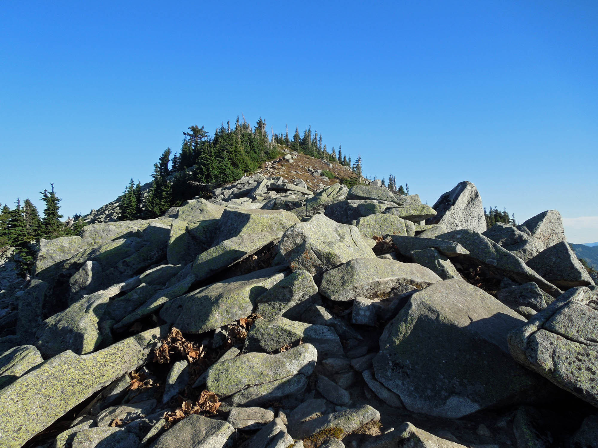 Be aware that there’s not much room on top of Lil Bandera for lots of view seeking hikers and a SOTA HF operator.  But it should be easy to get four 2 meter QSOs into Tacoma, North Bend, towards Eastern WA.   To navigate the big rocks and gully of a trail from the Bandera trail turn off to Lil Bandera I highly recommend trekking poles.  This trail has southern exposure so extra water is important.