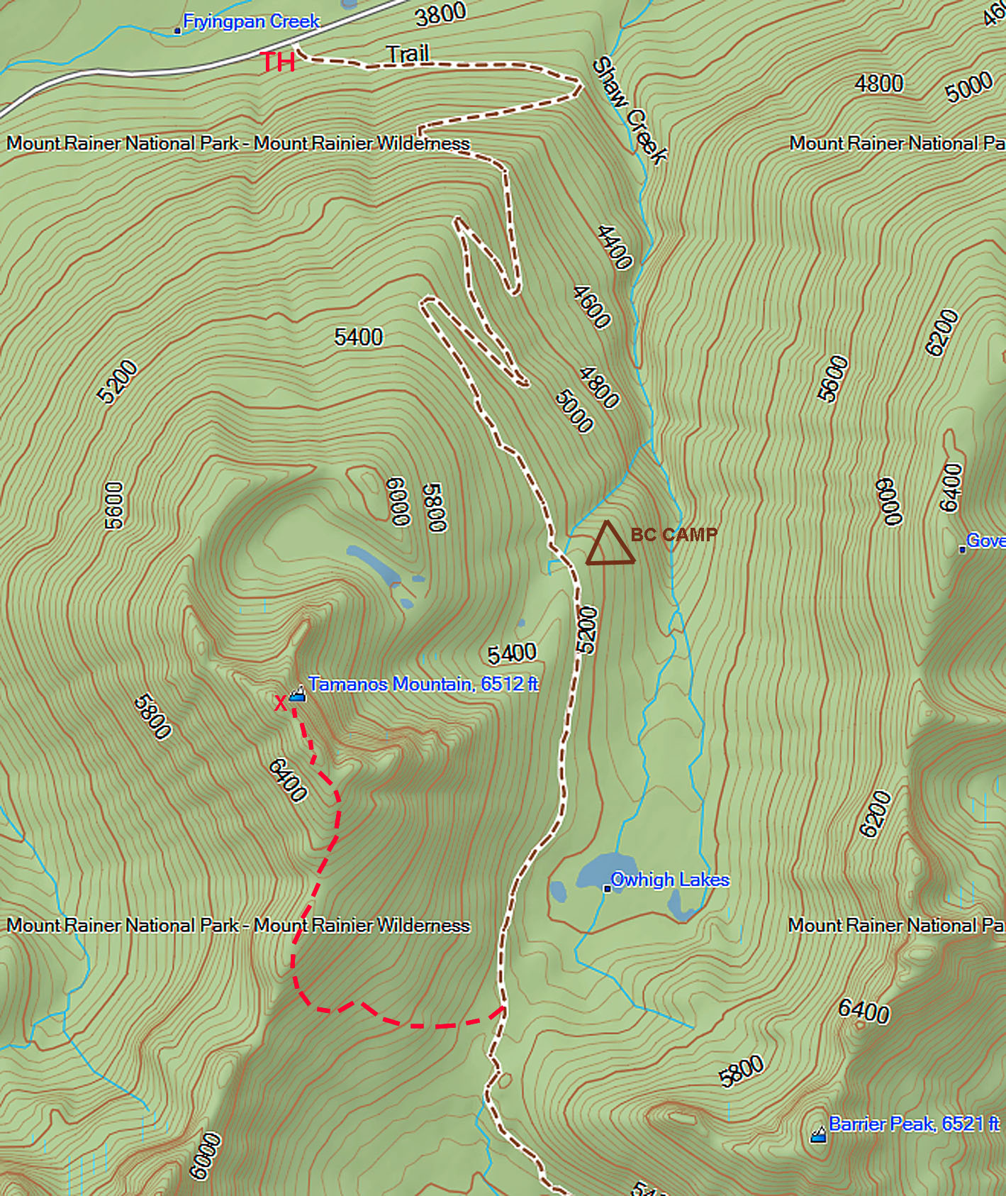 Tamanos Mtn, in Mt Rainier National Park is accessed via the Owyhigh Lakes Trail, either from the White River Road TH or the Deer Creek TH along Hiway 123.