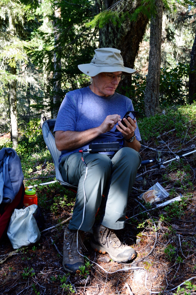 I made 12 cw contacts on 20 meters, and briefly tried 40 meters with no success. Unfortunately my timing on the peak just missed the other SOTA activations in the area, and although I heard a lot of 2-meter activity on 146.58 while I was on the trail, once I actually got to the peak I couldn't raise anyone on another peak. I did work Dan, N7YY, and Anne, K7AHR, while they were in route from one peak to another.
