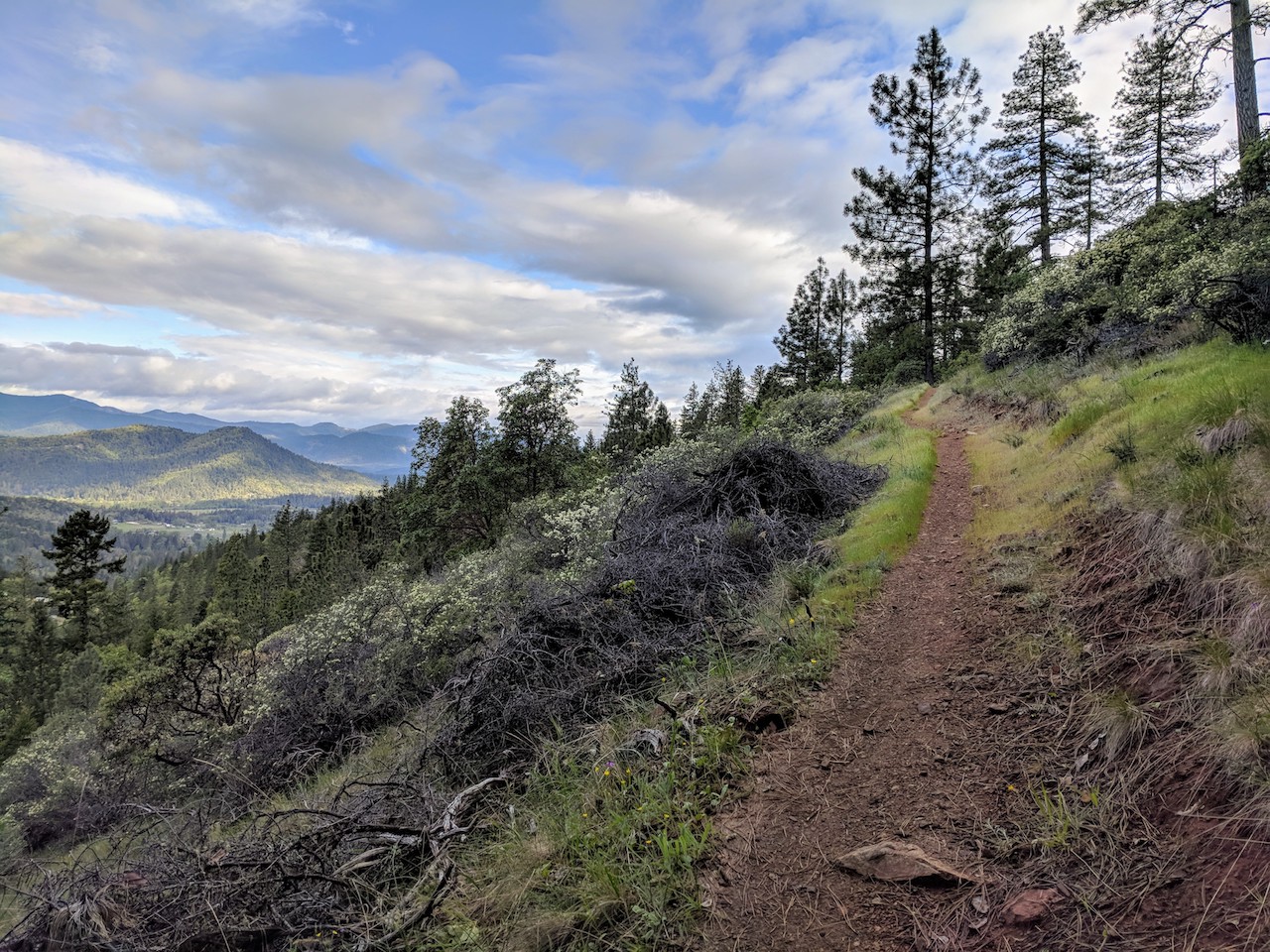 There is a trail to the top of Bolt Mountain from the Fish Hatchery County Park trailhead, though it’s not always quite so apparent. The key is to follow signs for the “multi-use trail”, though there is one tricky turn at 42.357706, -123.412432. I missed it and added a mile or so to the hike.