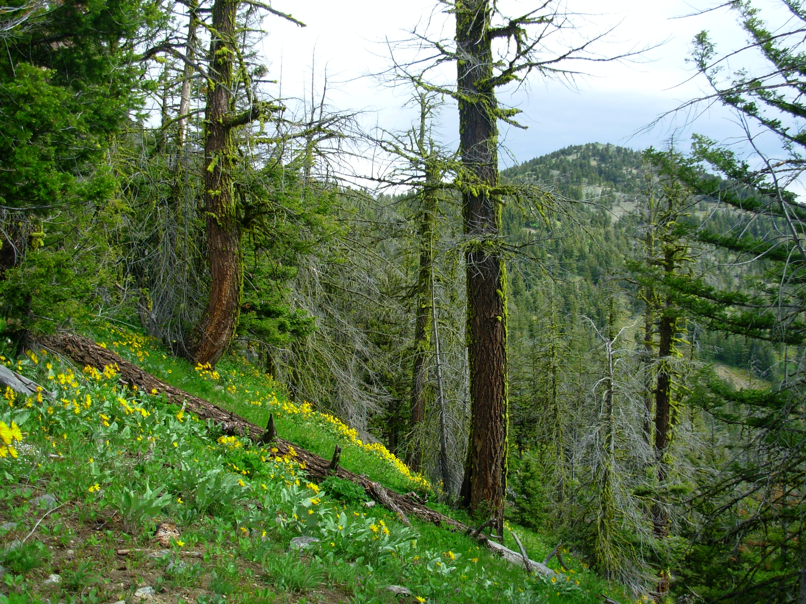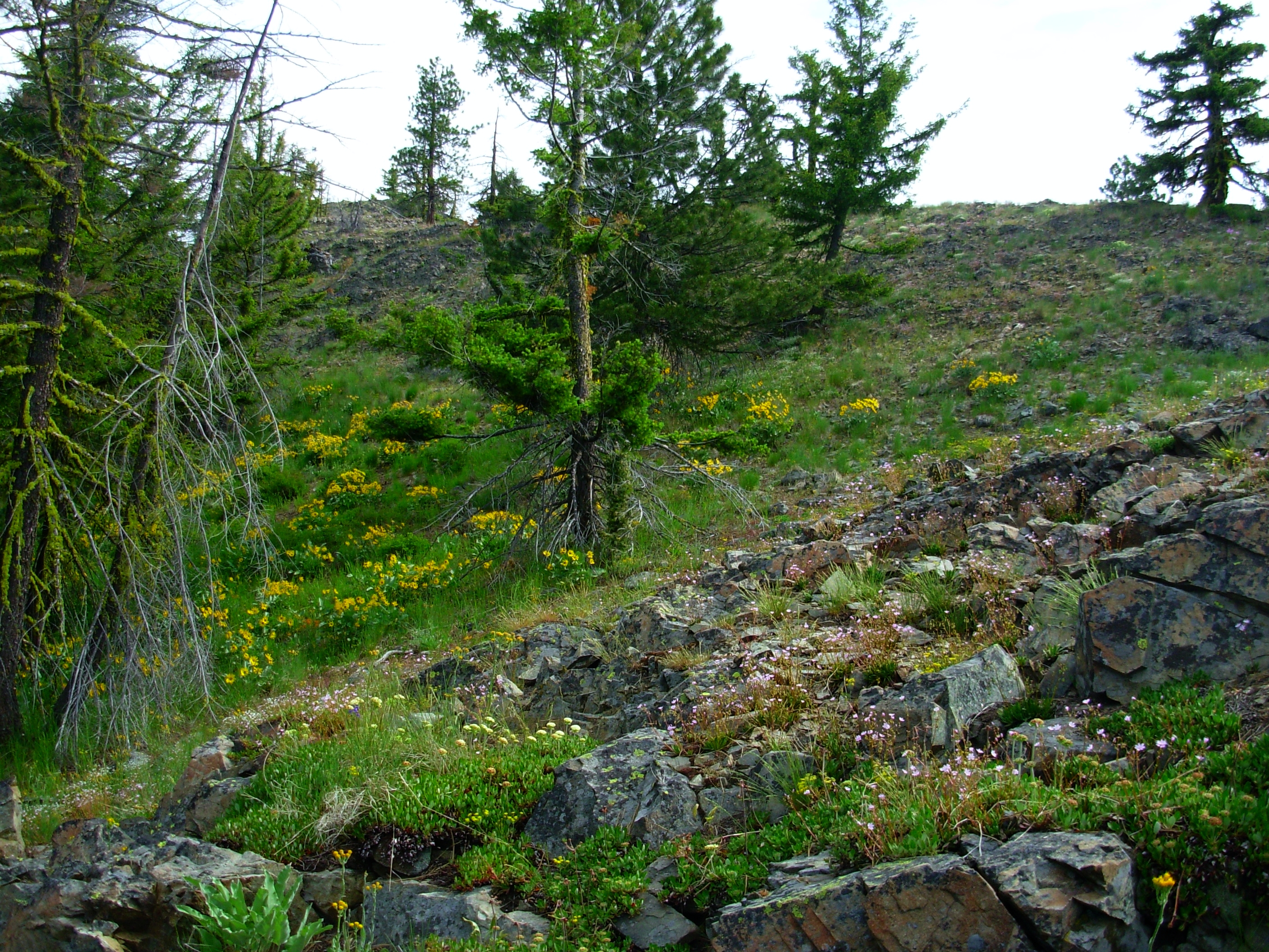 When you consider this peak for an early season trek, think "beautiful flowers, peaceful solitude, and great views". Early in June this year the hills are festive with colorful wildflowers. There is no trail, no signage, no parking lot... no hikers! And finally, the view - an unubstructed 360 degree view of green valleys, and snow-capped mountains. If you're comfortable with a little cross-country navigation, I recommend this one.