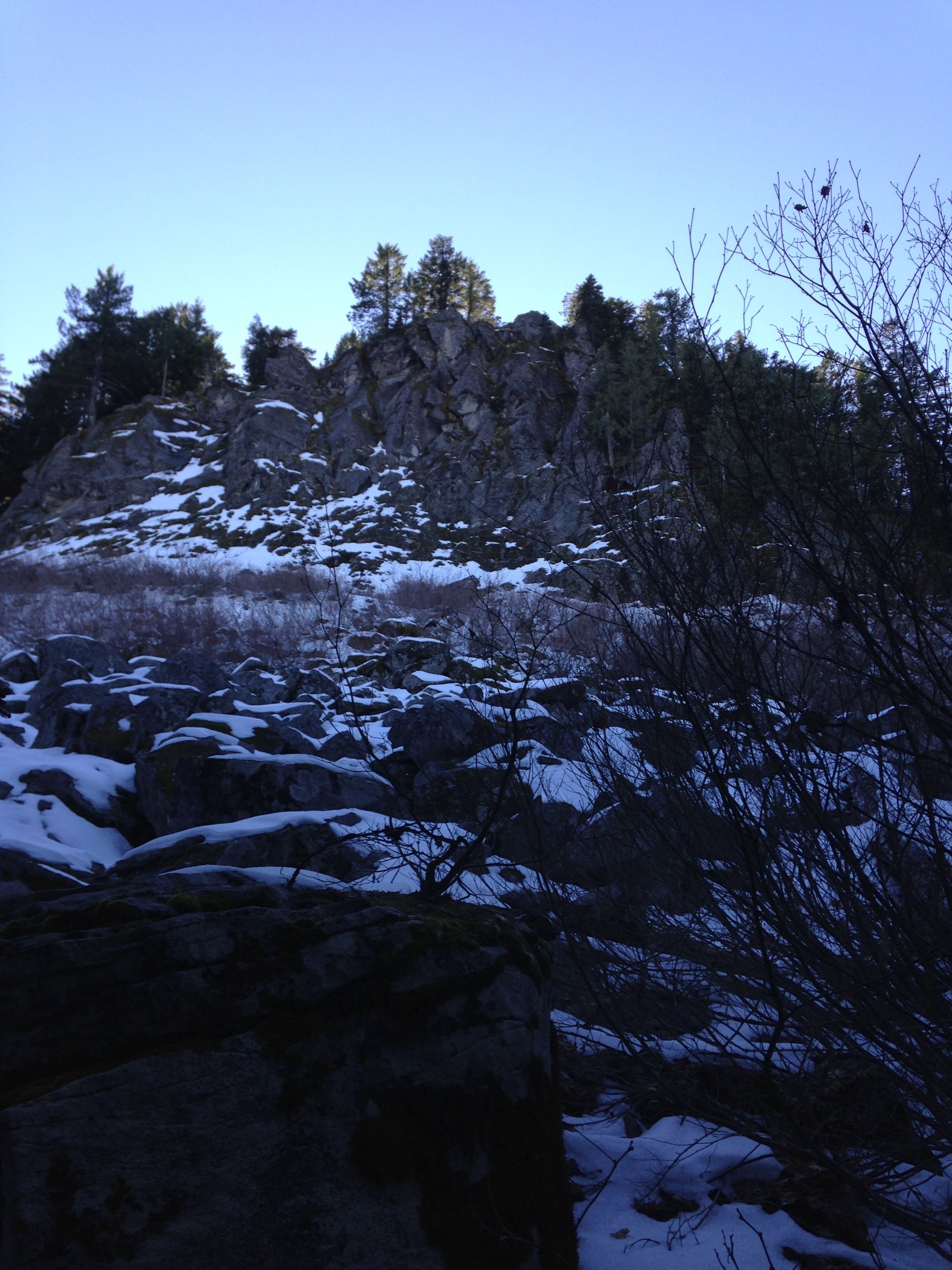fir timber and stay to the right (west side) avoiding the sheer cliff.