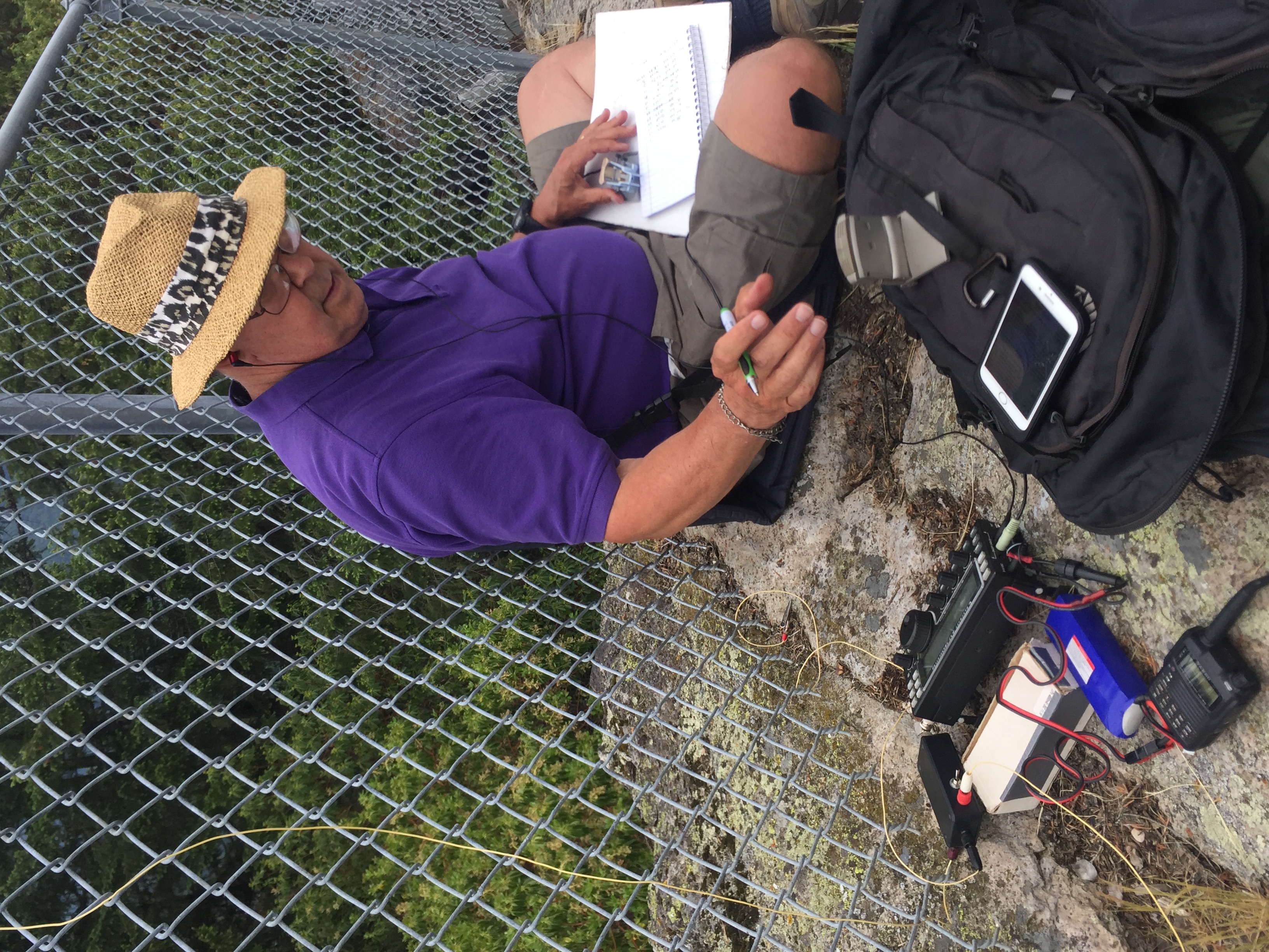 The final stairway climb to the lookout could be unnerving for those with height issues. Antenna masts can be attached to the bridgeway.and catwalk, as I did. The views were great. The wind sure whipped my carbon fiber mast around, but I had no trouble getting the needed contacts.