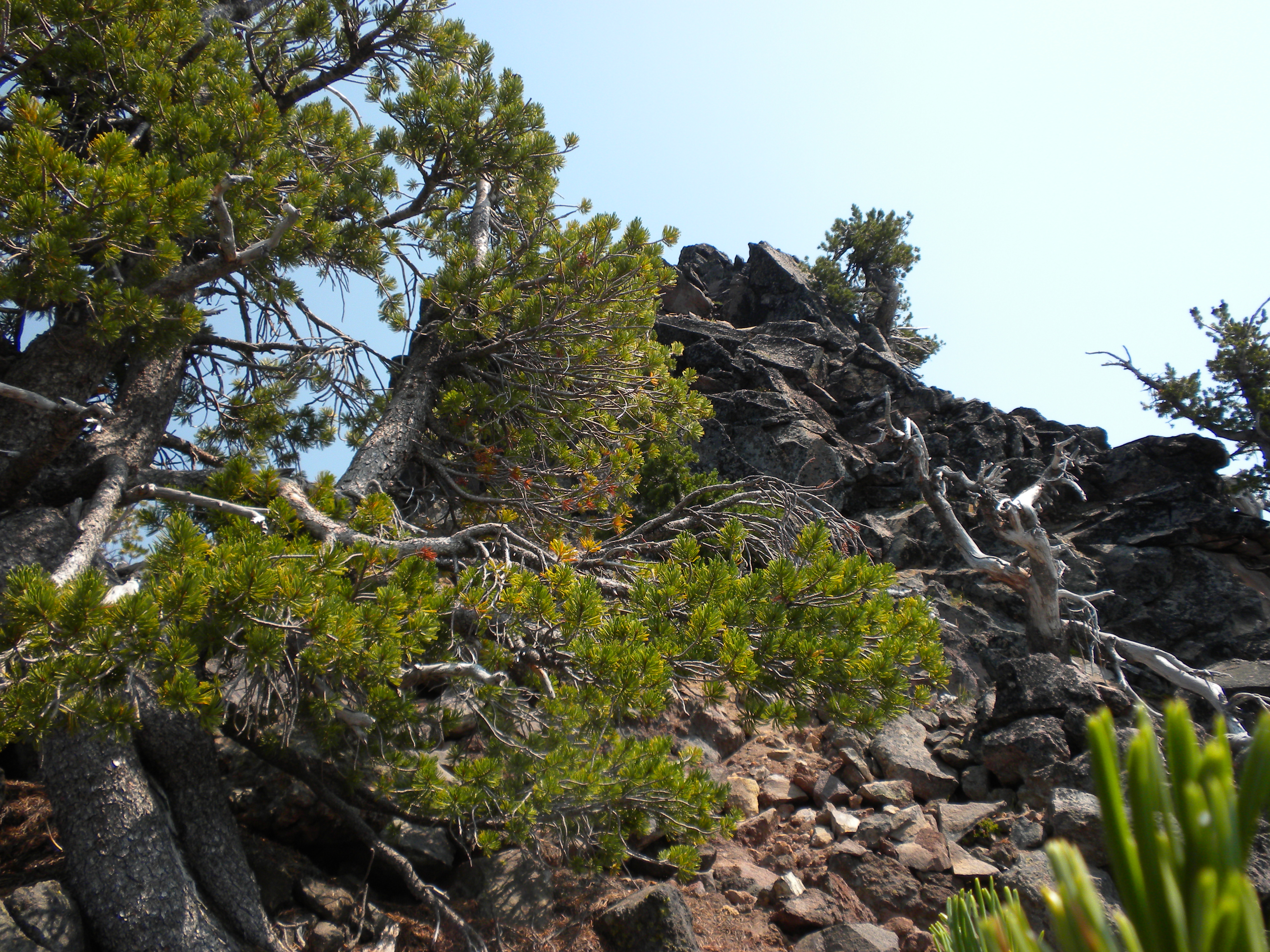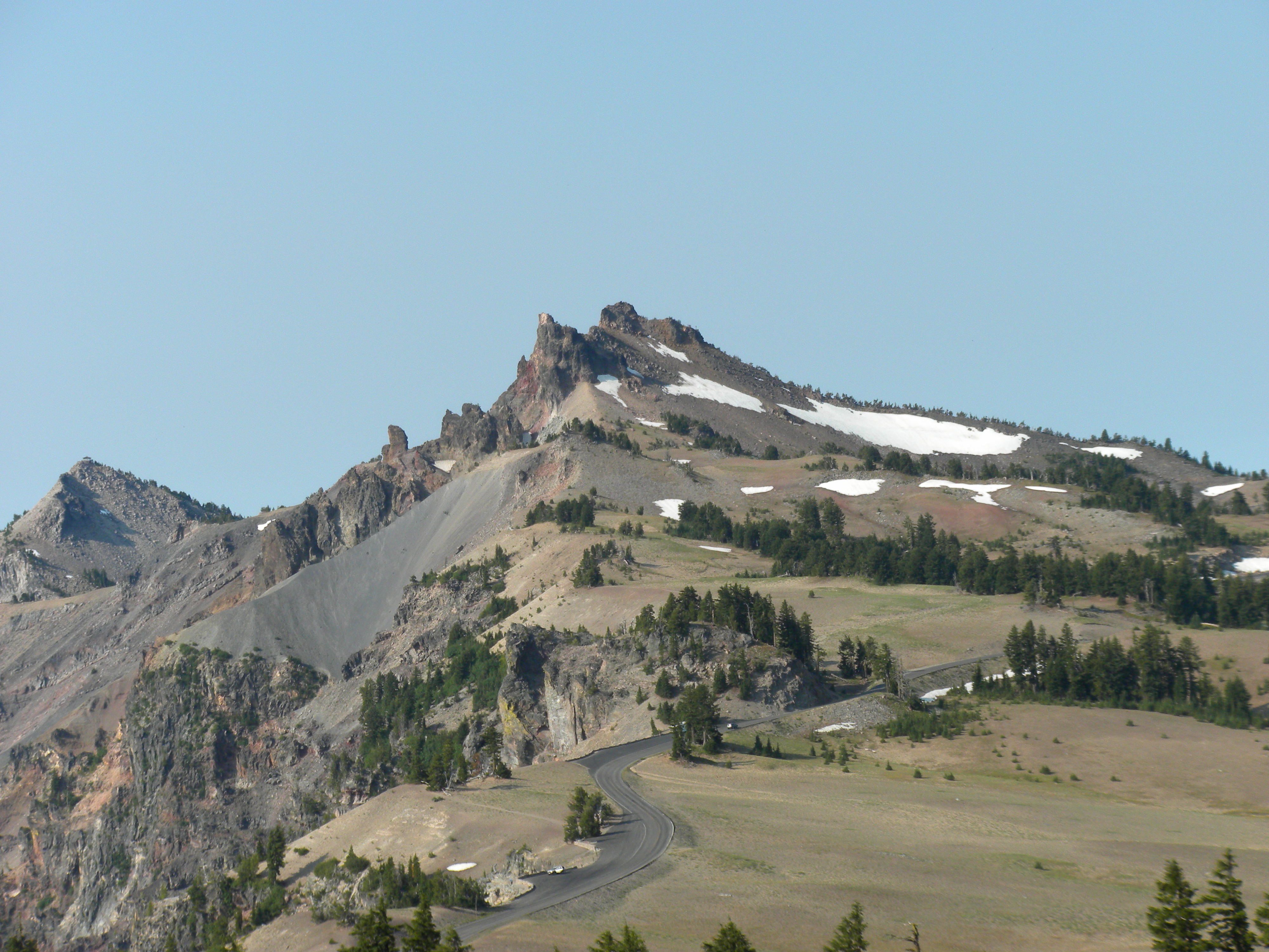 Hillman Peak is the highest summit on the rim of Crater Lake at over 8150' ASL. This pointed peak is not an easy climb, not because of the distance (1/2 to 3/4 mi) or elevation increase (less than 600'), but because it is so steep with a loose scree surface. Poles are essential to getting the traction to get up the slope.