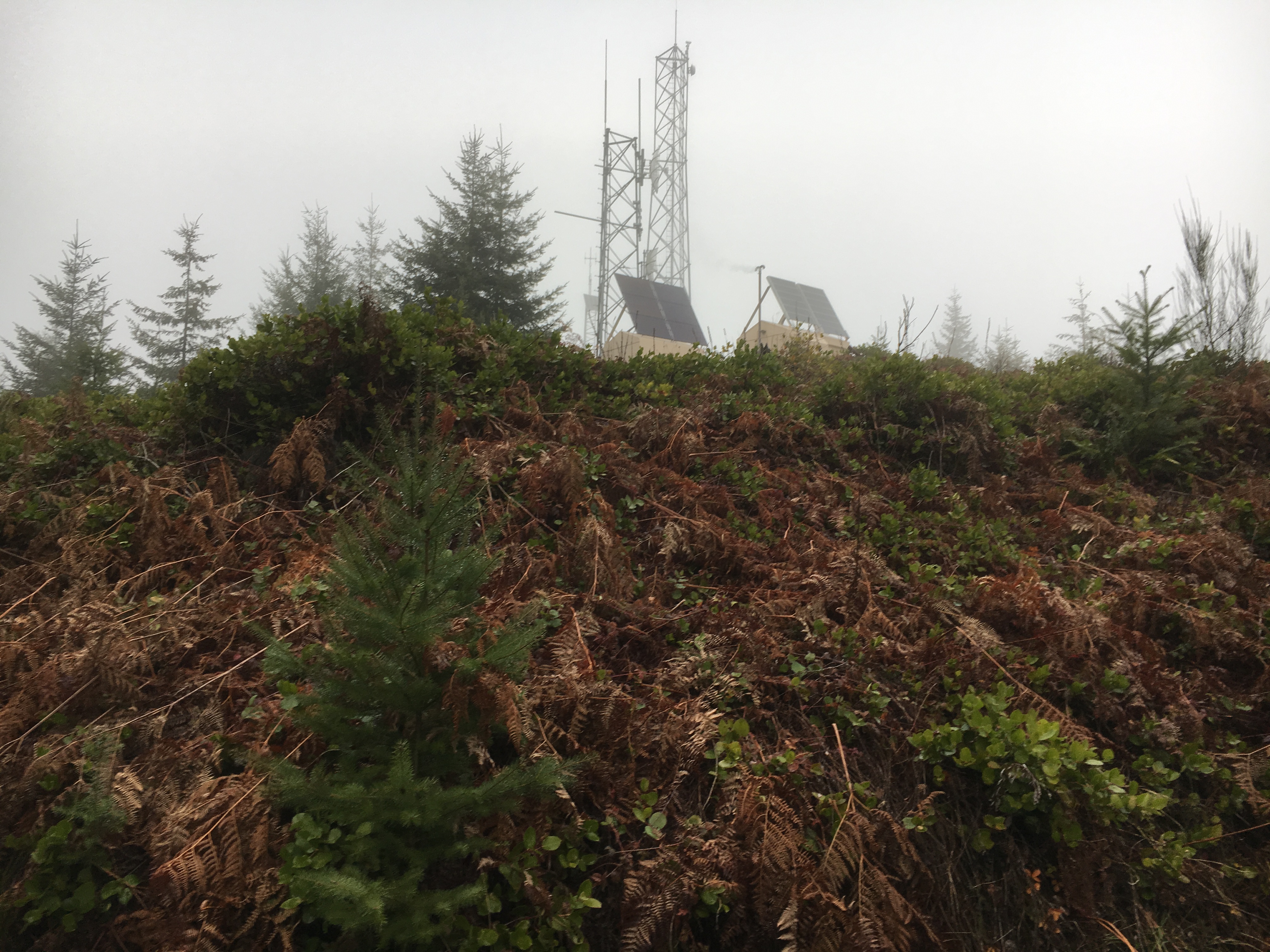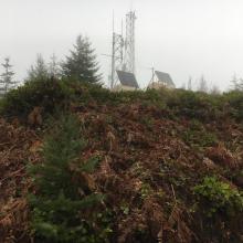 The summit is flat with a couple of RF facilities. It should be easy to find antenna supports. I bungeed my mast to one of the fences enclosing the RF facilities. The RFI was very mild. It was breezy, cold and a little snowy when I was there on December 30, 2016 - my last activation of the year.