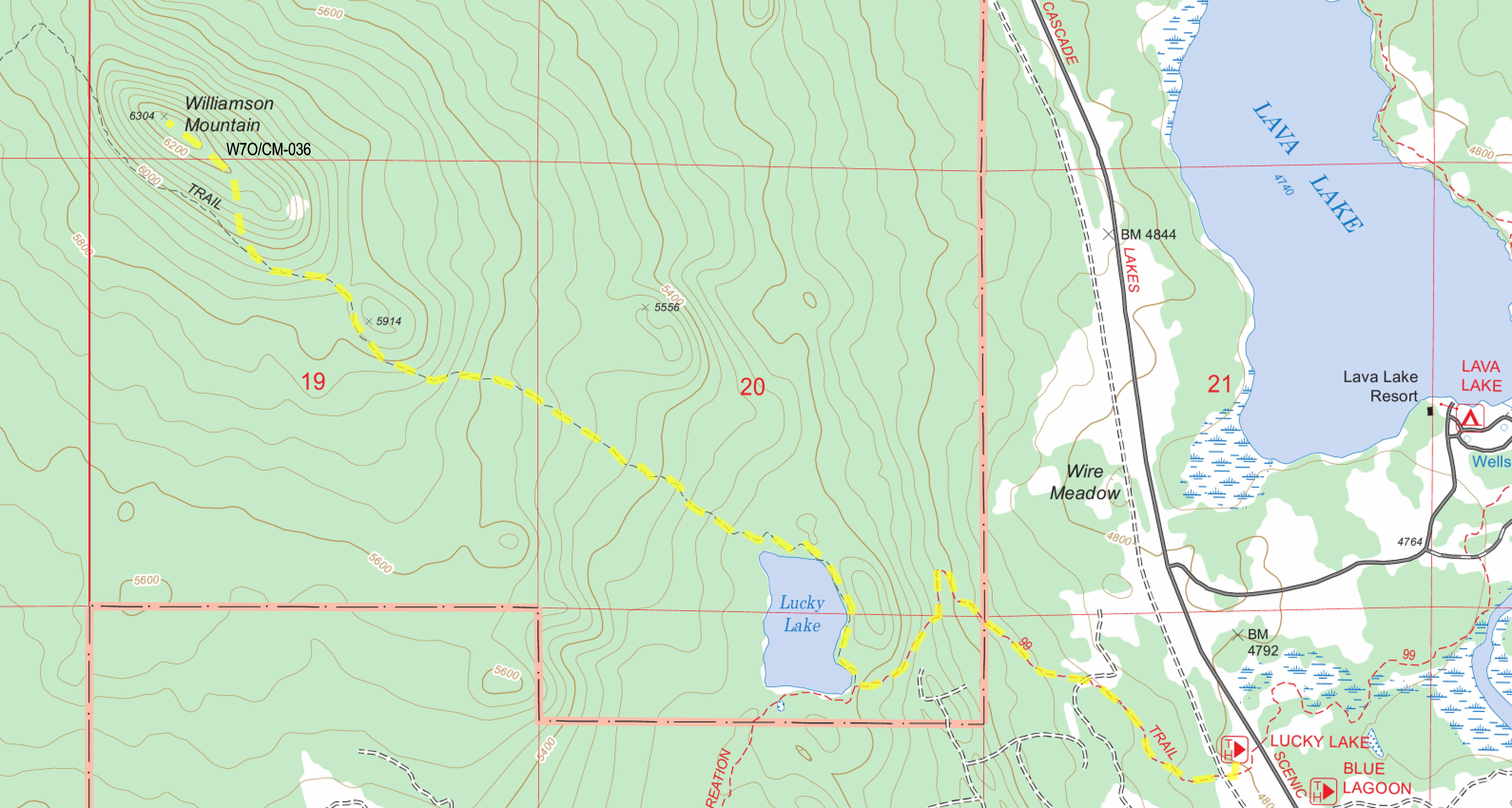 Williamson Peak is a nice day hike in the Cascade Lakes region west of Bend - located in the Three Sisters Wilderness area near Lava Lake. The best way to reach the mountain is from the Lucky Lake Trailhead, just off Cascade Lakes NS Byway/Lava Lake Road. From there the hike up to the summit is a little under 4 miles via the Senoj/Six Lakes Trail. The trail grade varies from near flat to moderate with a total elevation gain of around 1600'.