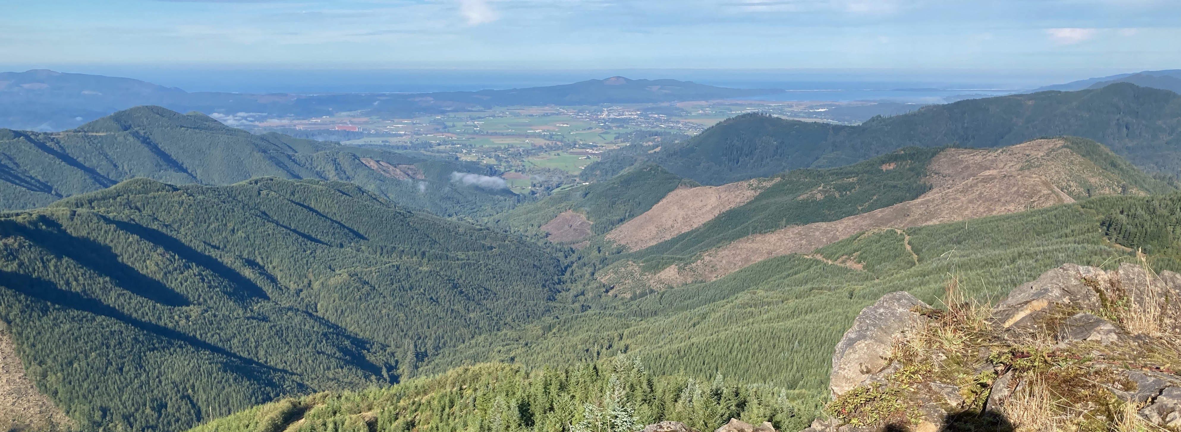 Gold Peak is a one point steep bushwhack in the Tillamook State Forest. To get to the trailhead one needs first to get to the Trask River Road out of the town of Tillamook. From Portland there are two cutoffs. One is longer and paved, the other good gravel. Travel times are similar, but the gravel route is shorter.