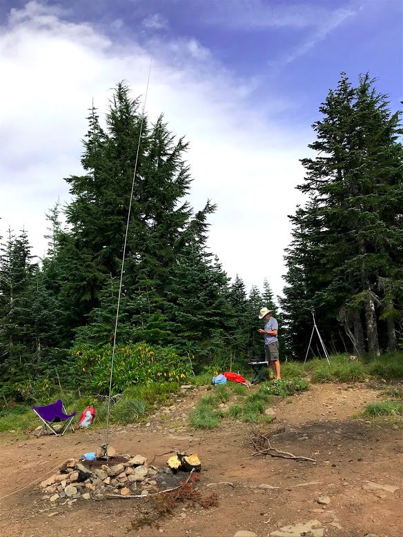 The summit is quite open, but there are trees in the activation zone. I put up a vertical and was able to make a S2S to AZ on 20M-SSB, as well as a bunch of contacts and S2S on 2M-FM.
