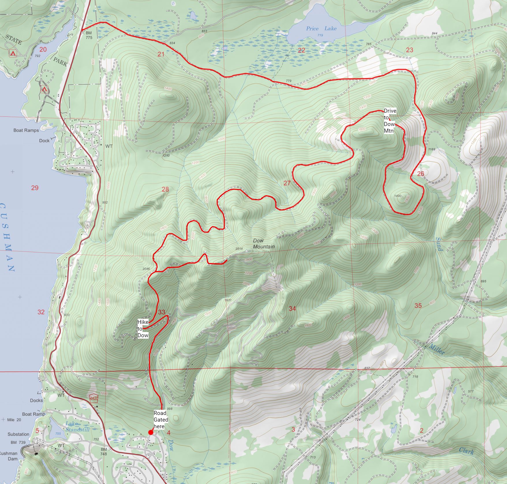 There are two ways to get up to Dow Mountain - a long drive on gravel roads, or a forest road walk of around 2.5 miles (1900' elevation gain). Since I was also visiting two other summits along the way, I opted for the road approaching from the north. The road going up to Dow Mtn. from Hoodsport is gated - this is the road to take if you wish to hike it.