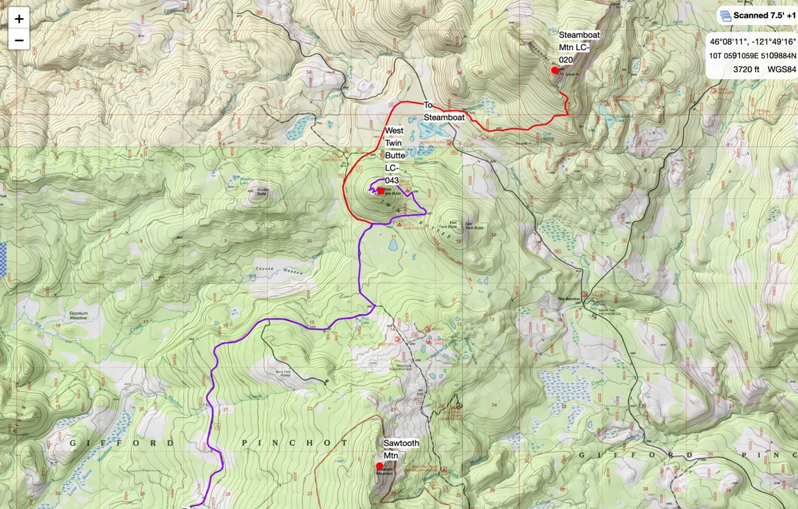 After you do West Twin, head NE and do Steamboat LC-020. We were planning to do this, but ran out of time.