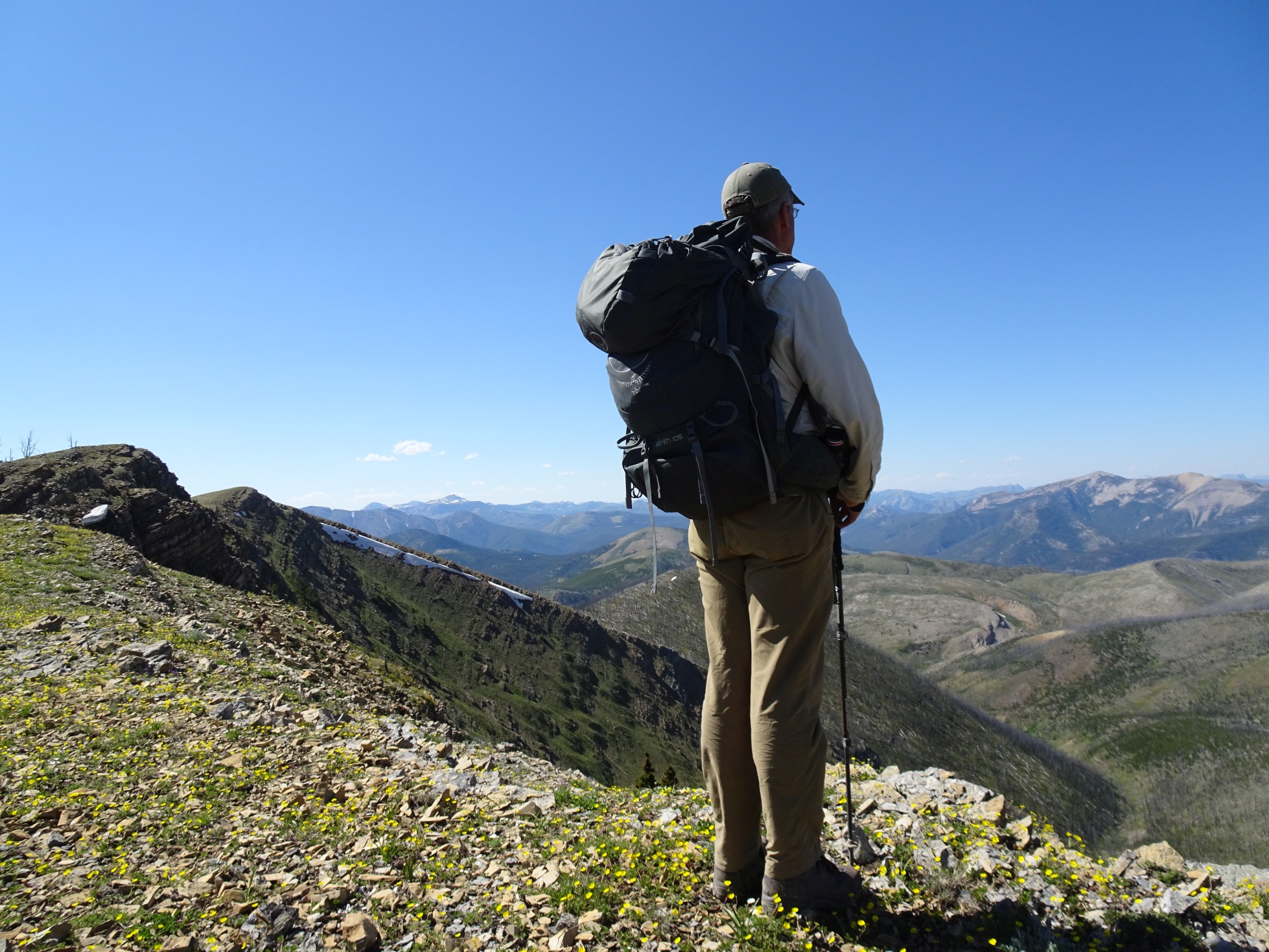 This is a fine summit, it has nice views of the Scapegoat, and the lookout foundation offers shelter. It may be possible to do this as a day hike from the Alice Creek trailhead to the southeast, but this would be a super-long day without any likely water. It may also be possible to make this a 2-day trip by hiking from Alice Creek to the pond on Day-1 & then to the summit & back out on Day-2. For this scenario, the Day-1 hike could be long, hot, and dry. We day-hiked from Bighorn Lake – which made for a very pleasant day.