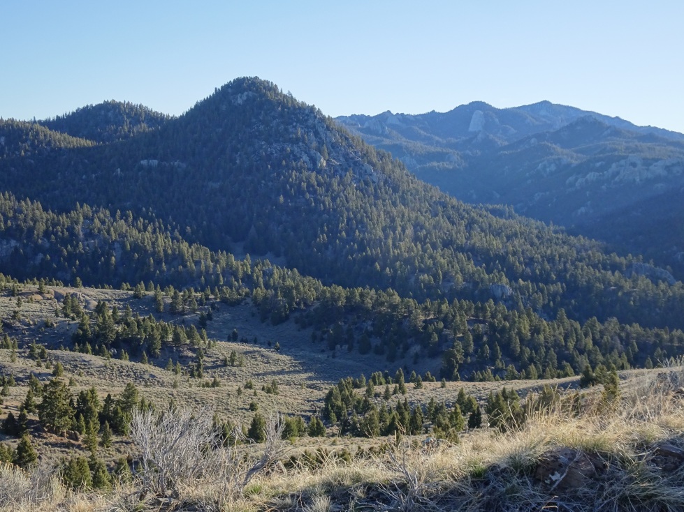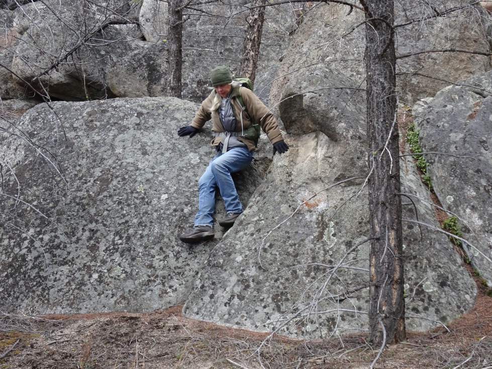 From the parking area, walk about 100-yards up (east) the gravel road and then follow the obvious path that heads up (north) the drainage between W7M/BR-155 & W7M/BR-150.  Follow the path up the drainage & then turn right (east) & climb off trail up the right (south) side of the gully that bounds the north side of W7M/BR-150.  Leave the gully when you near its head & climb directly up to the summit.  The climb is steep in spots & you must navigate around several boulders, but there are no particular difficulties.  The summit has nice views of the Humbug area, as well as the surrounding mountains & valleys.  It seemed possible to become rimrocked on the descent – but we always found an easy path around each obstacle.