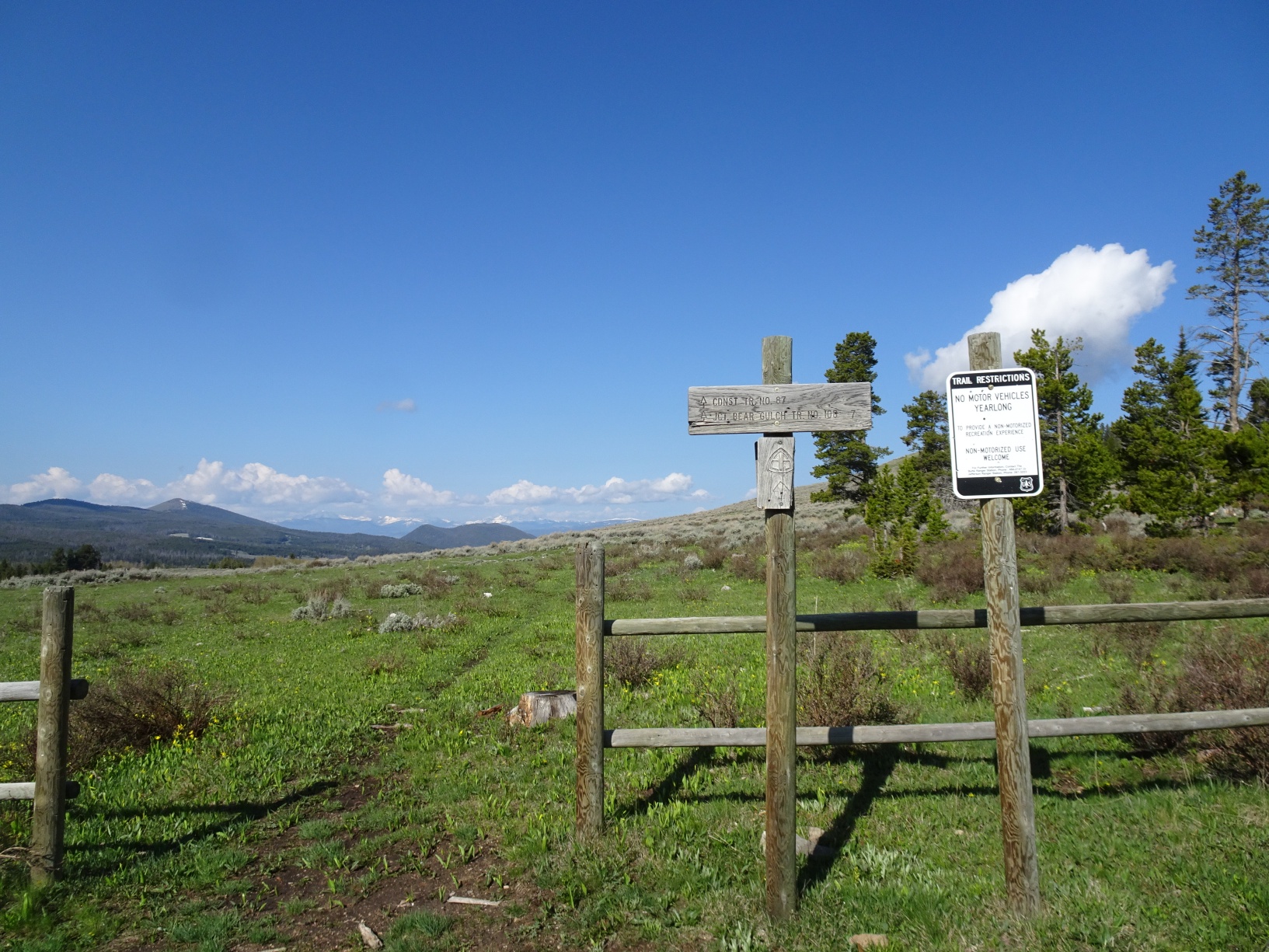 The hike to this summit includes approximately 1.5 miles of nice hiking along the CDT and about 0.5 miles of bushwacking through timber to reach the summit. The summit is located on the southwest edge of the Basin Creek Research Natural Area, which is also the drainage for much of Butte’s water supply. This area is closed to all public access. Take care during the hike to not cross the divide into this restricted area – it is not fenced. Note that the trailhead and trail differ from what is shown on the 7.5’ USGS map. The actual trailhead is about 0.4 miles southwest of the location shown on the map, the trail has been routed to avoid the restricted area, and it has been extended to allow access to points north via the CDT.