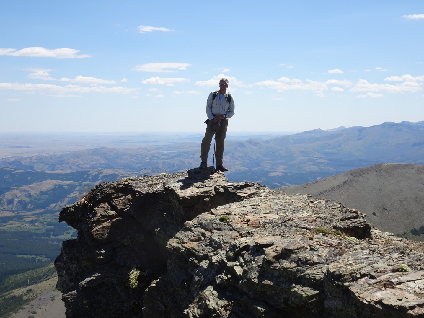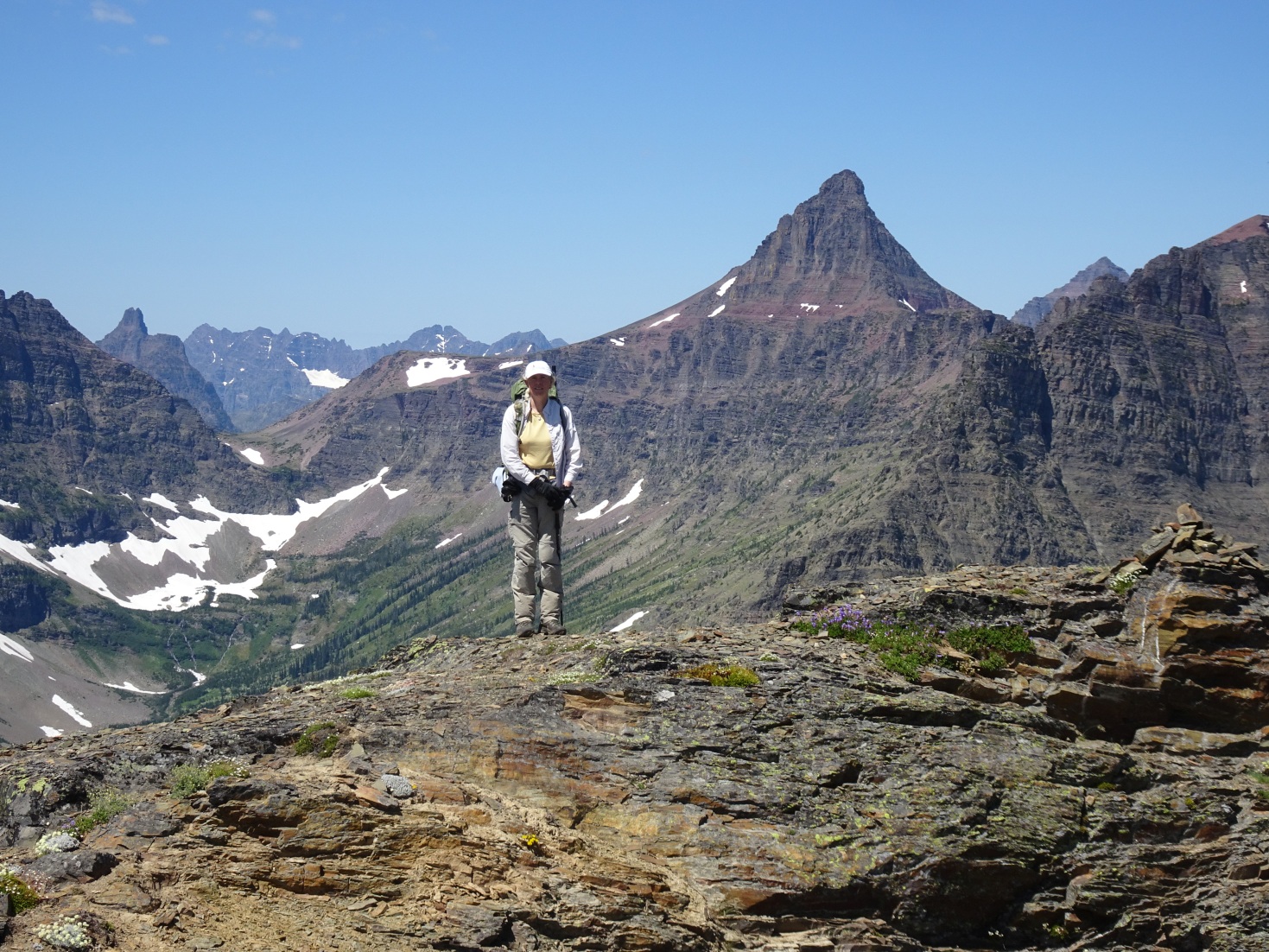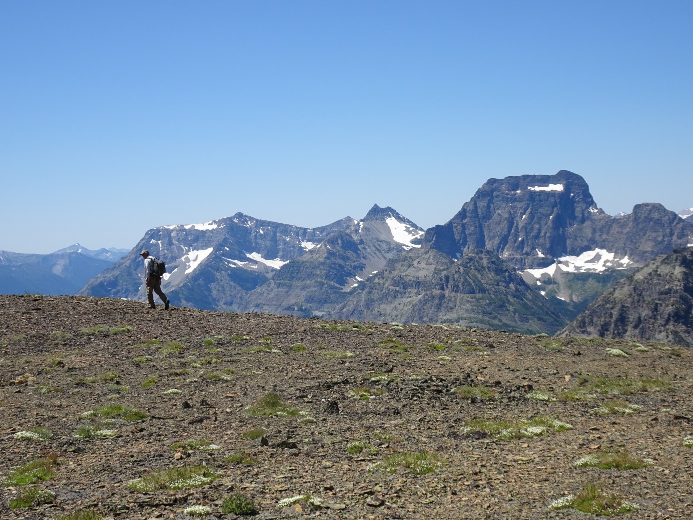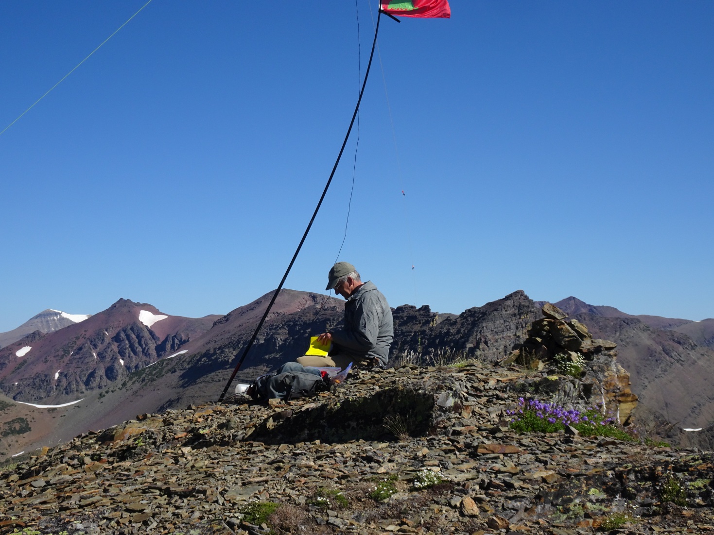 A dawn start is nice, as the ponds and eastern front can be spectacular in the morning (mist, alpenglow, etc.), and it gets you out of the hot low country while it is still cool.  The mid-part of the trail is through the forest and is not as scenic – but scenery along the path up to the pass and onwards to the summit is spectacular with great views of the plains, and eventually the spectacular scenery of the Glacier Park summits.  The trail and summit are uncrowded by Glacier NP standards – we ran into one other party on the summit as we were finishing our activation.  This is Grizzly Bear country – so it is advisable that hikers carry bear spray.  The climb is described with great detail and photos within Volume-2 of Blake Passmore’s excellent “Climb Glacier National Park” series.