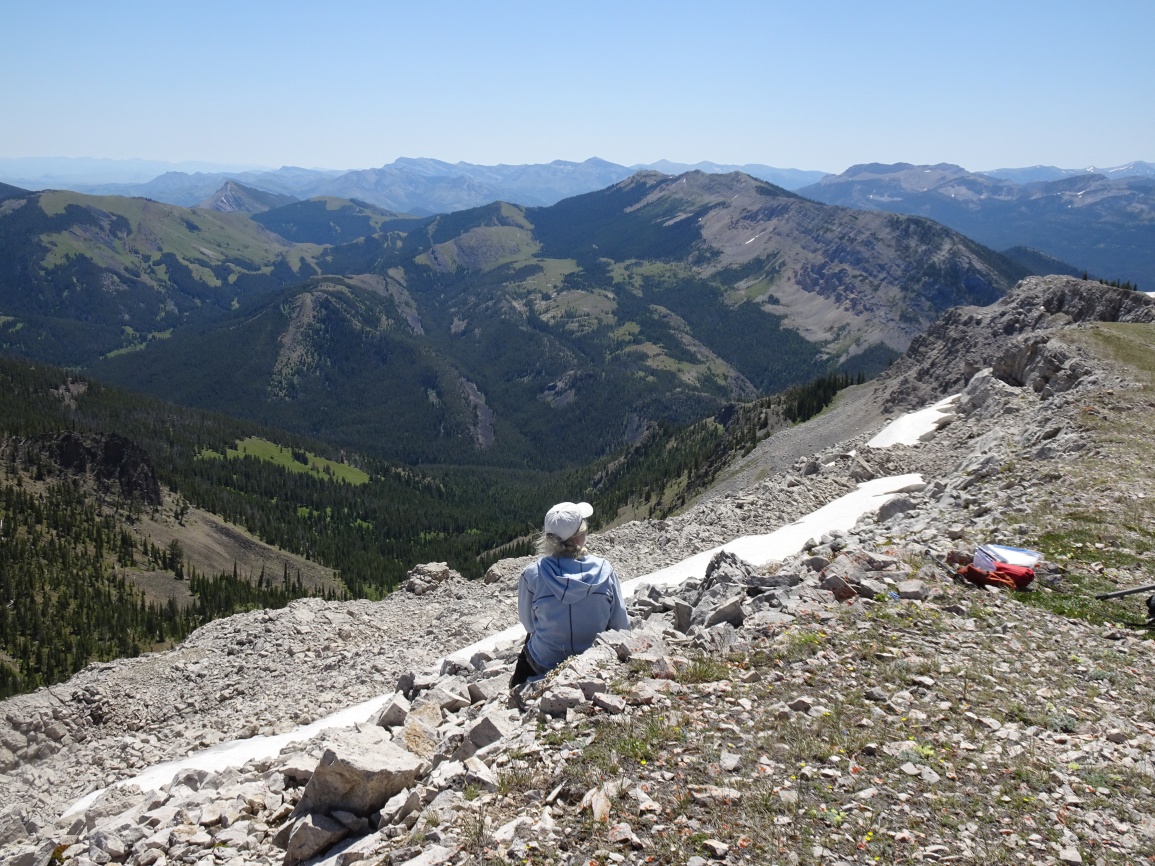 The summit views are extraordinary on a clear day.  You can see deep into the Bob Marshall Wilderness and beyond to the Mission Mountains to the west.  The Scapegoat Plateau and Sugarloaf Mountain dominate the Southwestern vistas, while the backside of the Rocky Mountain Front and the prairies beyond are to the east.