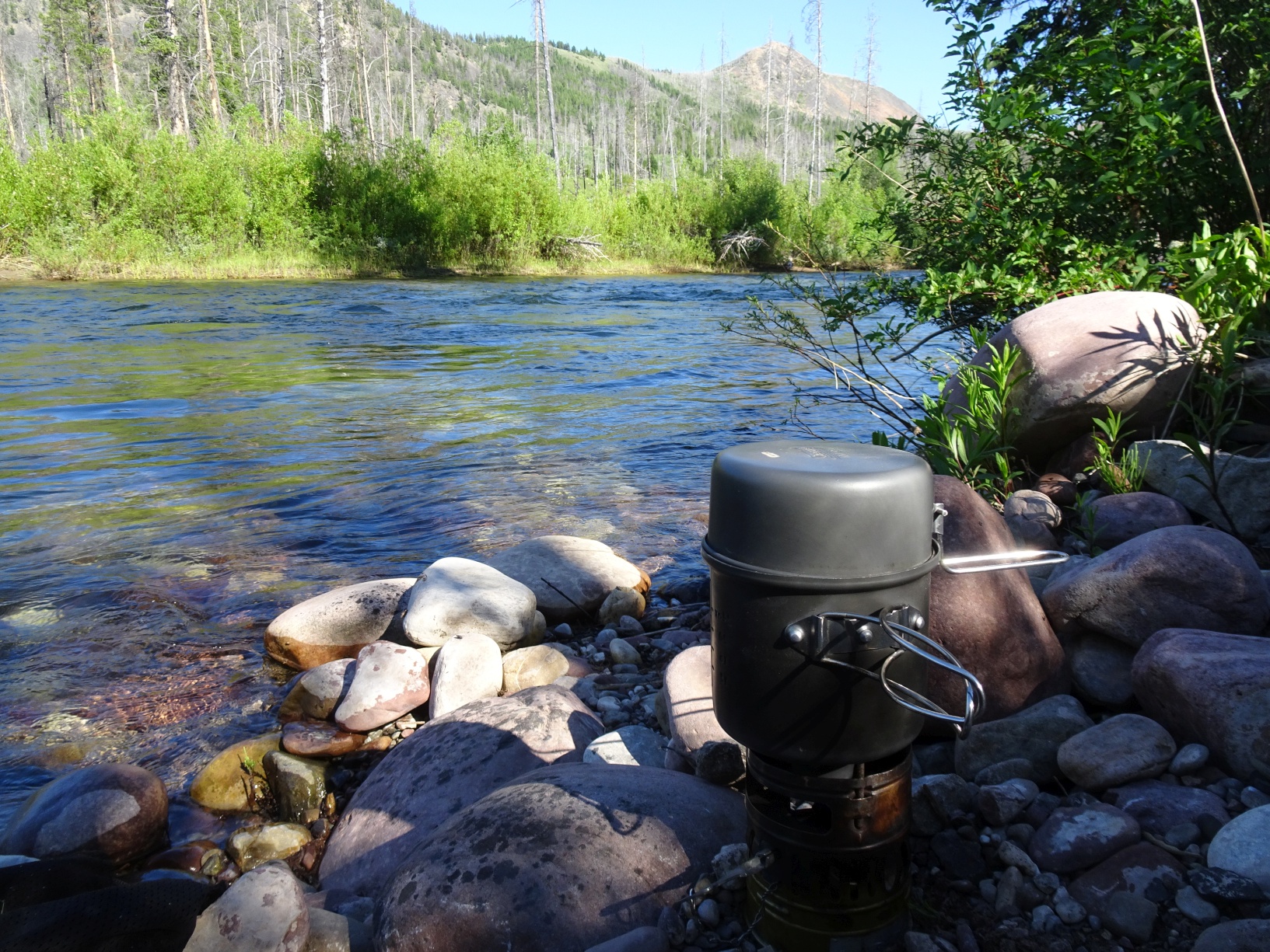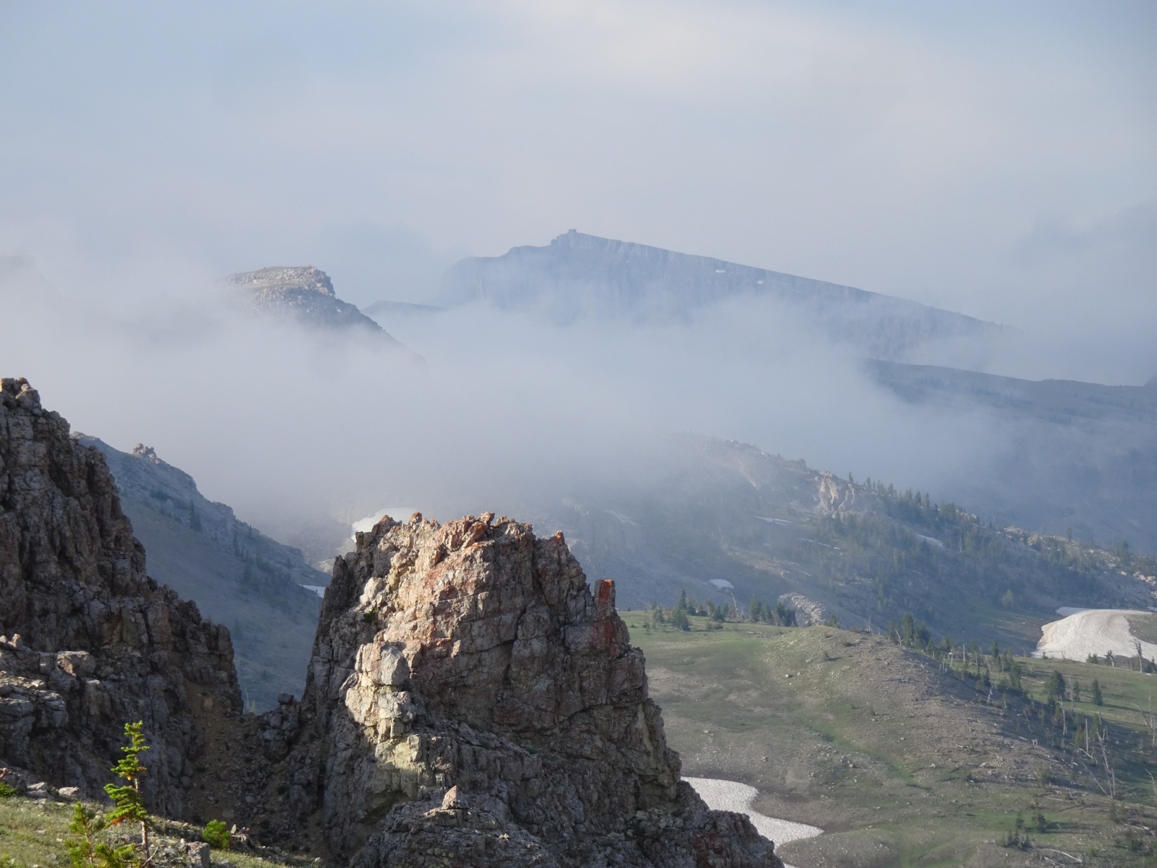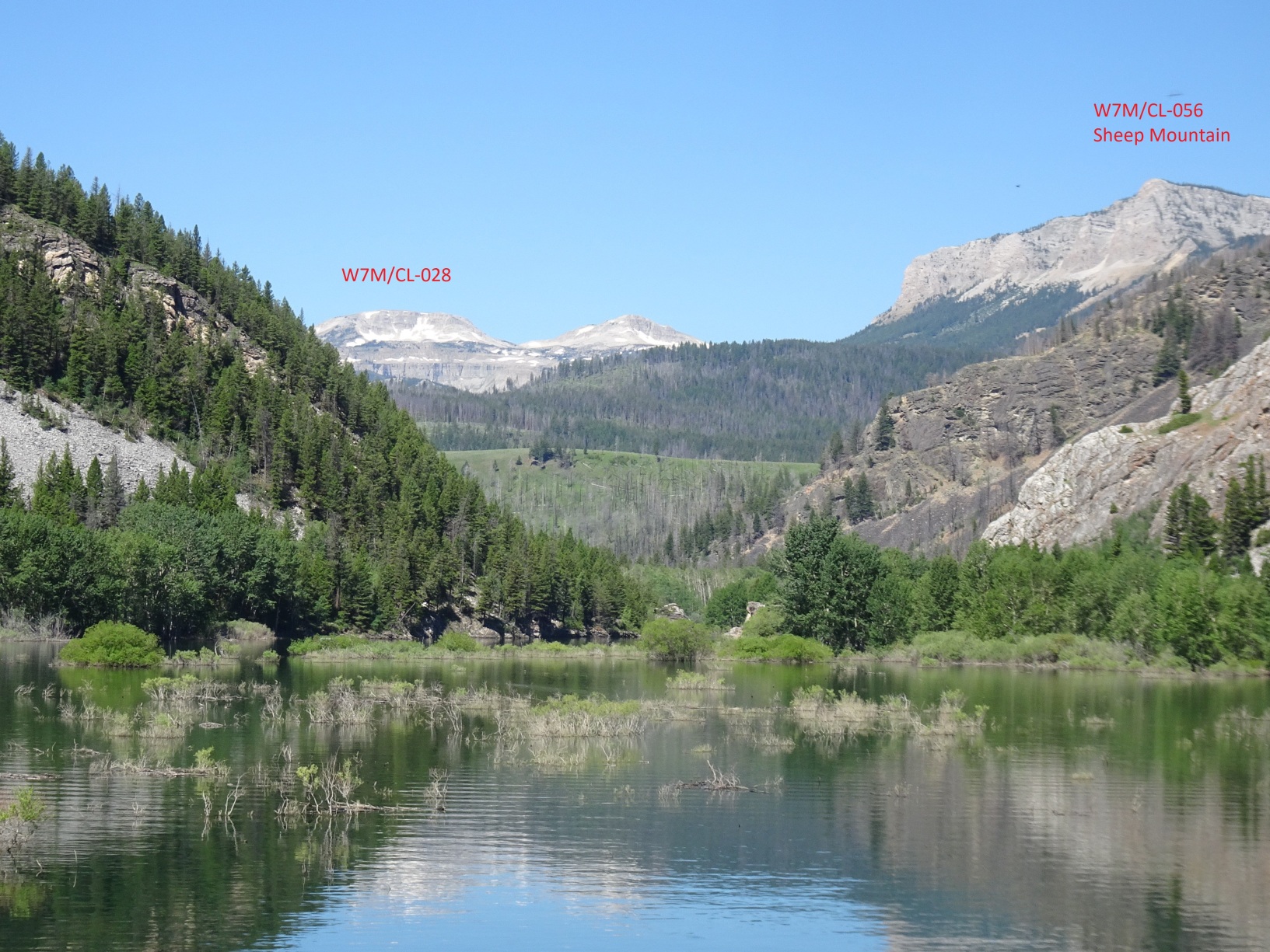 We climbed this mountain on Day-3 of an 8-day Backpacking trip in the Bob Marshall Wilderness from the trailhead parking area just south of the Mortimer Gulch Campground on the north side of Gibson Reservoir. Begin by hiking 5.8 miles west on Tr. 201 along the north side of Gibson Reservoir to Reclamation Flats. Continue west on Tr. 202 to the K-Bar-L Dude Ranch. The trail continues through the K-Bar-L (which is private property that should not be loitered upon), crosses the North Fork of Sun River on a nice Pack Bridge, exits the K-Bar-L, and continues around the south side of Sun Butte (W7M/CL-169). Continue paralleling the South Fork of Sun River to the Bear Creek Trail turnoff (Tr. 222). We continued past this junction to camp alongside the S. Fork before continuing up the Bear Creek Trail.
