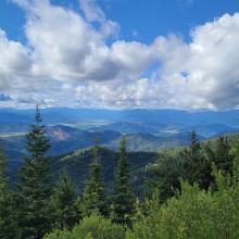 This was my first of three in one day in N. CA just west of Yreka in the Scott Bar Mountains. It was a pleasant area to activate, forested knoll with some large open spaces to set up in and look down to Scott Valley to the SE. It was still early and we were in the clouds a bit so couldn't see the distant mountains such as the Marble Mountains and Shasta too well but probably you can on a clear day, and depending which side of the summit you are on.