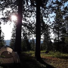 This was where we chose to camp for our multiple summit trip, just at the northern base of the mountain, in a nice forested flat, just a jog up RD 105, the road is blocked a little further up. Where we camped is also about where you want to hike up the summit. Nice hike but we got really tangled up going down the mountain too far down the NW ridge rather than the face of the ridge and were caught in solid buck brush. Check satellite images to avoid, if you avoid this its about a 1.75 mi RT hike in a mixed forest with lots of Sugar Pine in a blanket of Indian Paintbrush. Plenty of choices to set up at.