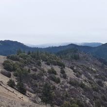 There are a couple ways to get to Baldy Peak and I think I took the longer route with more gain. I really wasn't sure if I would get this high with snow levels so didn't even pay attention to the other but when I was there a couple others were on trail too from the other side. You will have to go off trail to do the final climb which is a little crumbly and steep. I chose the ridge line partly in some vegetation so the ground didn't slide so much. It was overcast but I can tell it has a fabulous view. Wasn't bad even with the clouds. I took the Charlie Buck/Baldy Peak Trailhead. It ended up being about 1600' gain in about 1.1 miles up. Pretty steep but a good trail. There was poison oak too but not too bad.