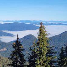 Knowing this would be my only summit for the day, I spent more time than I usually do calling CQ, enjoying the sunshine while all the valleys were locked in with cold wet fog. I operated pretty much on the boundary of Oregon Caves NM and the NF to do a park and SOTA combo.