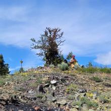 Mckinley Mountain was my 3rd summit up on the Scott Bar ridge for the day. I was coming from the west and there is some very rough and narrow sections of road with steep banks, no shoulder, worst was driving around Deadwood Baldy Peak (not a SOTA). If you come up from Deadwood Creek Rd this may be avoidable, I'm not sure. Either way, this country is not meant for passenger cars and make sure you have good tires and a spare. The hike is about .8mi up a inpassable road from RD 45N28, with about 650' gain.