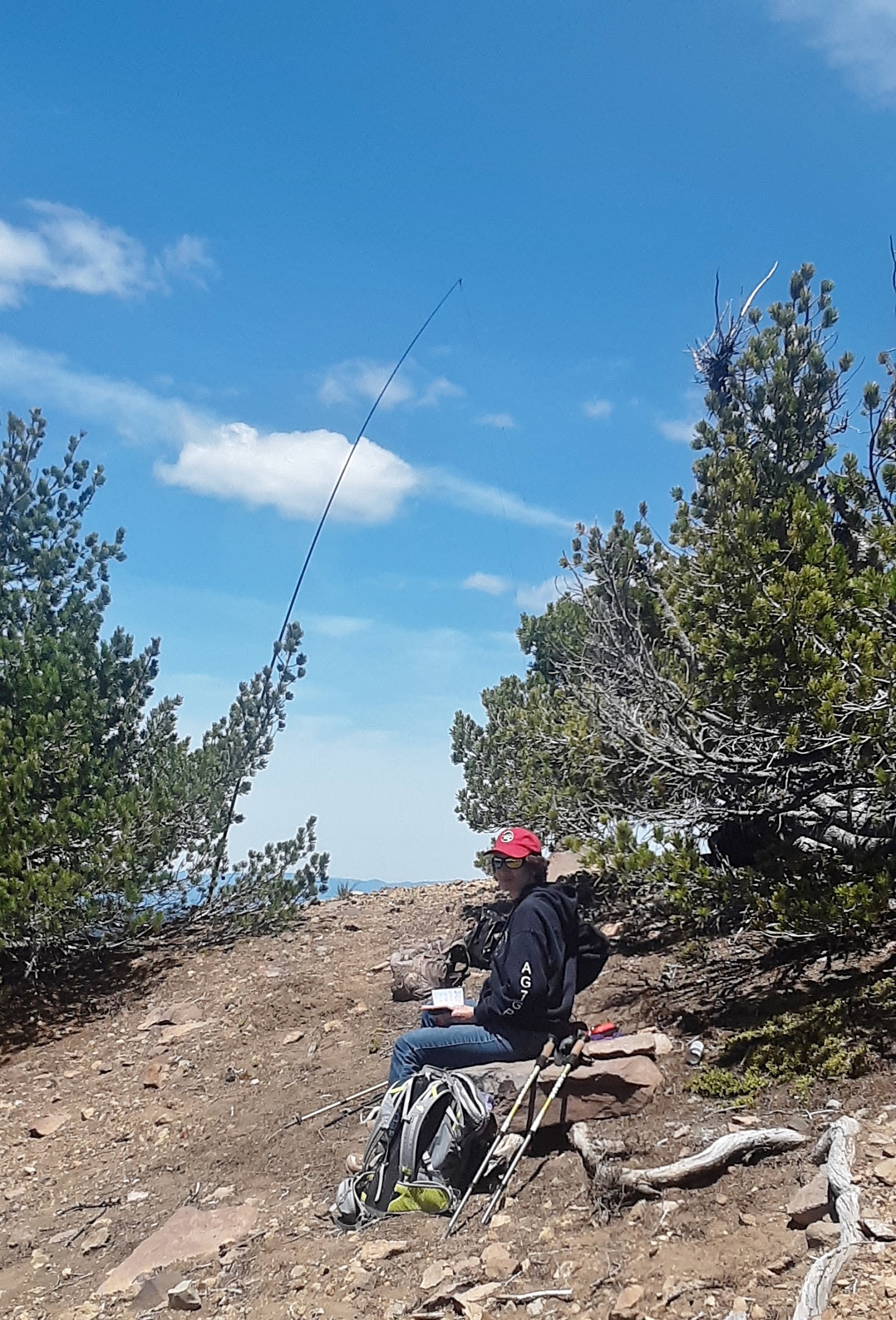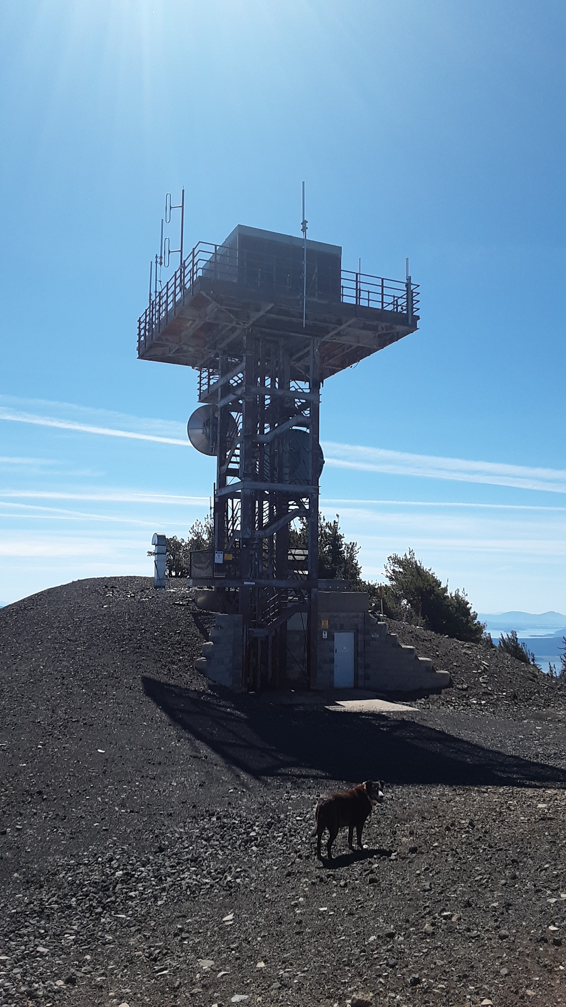 Without snow, this is a drive up summit, however the road is not easy. From 140 you will take FS RD 3651 for about 9 miles following signs for Cold Springs TH. There was a no motorized vehicle sign when I arrived so I called Klamath FS office to confirm it was error and only during the winter months for snowmobile trail. You will turn right on FS RD 980, this is where it gets difficult. This is a 4.5 mile no maintenance rough road. Good tires, high clearance a must. We parks at side of road 1 mile short of summit due to deep snow drifts. There is a tower with a vented underground bunker at summit. A triangulation station of pins just past the tower, walk out and enjoy the view. Plenty of room at the summit to set up and take in a 360 view for many,many miles on a clear day. I set up on a rock mound/ridge with a few stunted trees just before the tower, no interference.