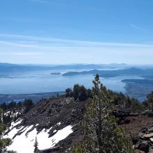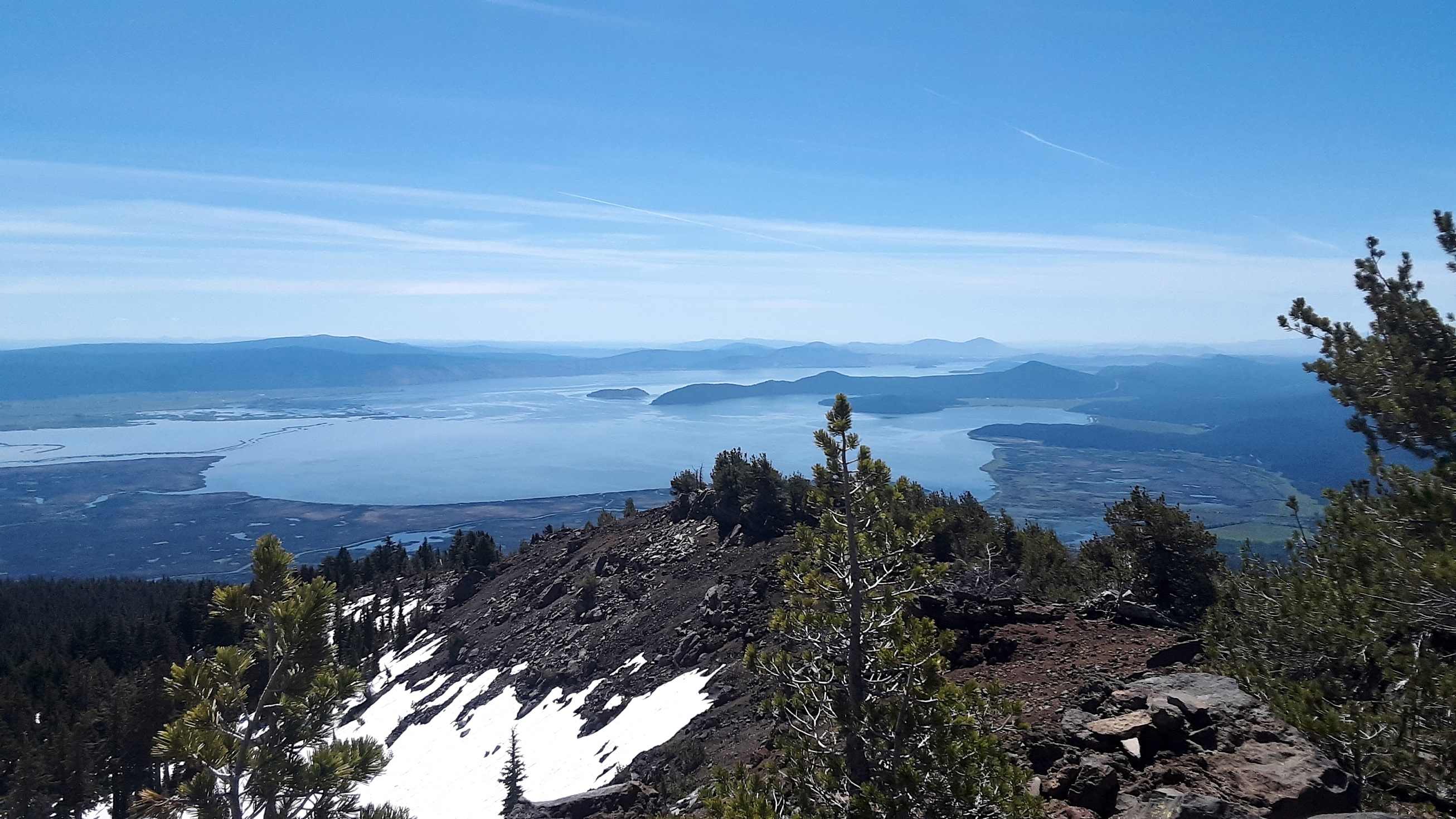 I have to say, this summit is now at the top of my list. I went expecting an easy drive to 8 pt summit, but there was still about 3-5 ft deep snow drifts about 1 mile before summiting, but boy was the hike nice. The view is incredible. You can see just about all the regional highlights, snowy side of Mt. McLauglin with Fourmile Lake at its base right beside you, Crater Lake Rim, Thielson, Shasta, Upper Klamath Lake, Siskiyou Crest, Red Buttes, Aspen Butte, some big ones west of Crater Lake I did not get the name for, lava flows, and natural lakes. All I can say is it was spectacular and I did not want to leave. Many pictures but they don't do justice to the actual experience on Pelican.
