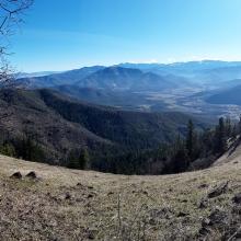 I couldn't resist the perfect weather today and left to go activate Mt. Isabelle but when I got up to the parking area I noticed there was a road that went to Wellington Butte the other direction, to the left. I drove past this butte on 238 for 3 years going to work and I was under the impression it was a closed road, but I was wrong. I carefully made it through snow, ice and mud and had a lovely day.Spectacular view looking down at Applegate River, Ruch, the Siskiyous, Grants Pass, etc. Near 360 view. It reminded me of looking into a curved glass diorama.