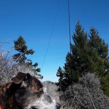 What I learned: Don't take the road all the way to the base of the summit. It is very, very, steep with lots of down timber that is hard to hike up. Instead you will come to a spot on the road that the road and ascending ridge are about the same elevation. Start hiking up the ridge to the peak here staying a little on the se facing side. There is far less timber on the side and the way I came down. Another thing is poison oak. It is heavier on the sw side and it is the size of trees! Plenty of room to set up on top but I found it a little challenging to find a place to put my pole that was not tangled with poison oak. I found a dense shrub just shy of the rock clustered summit and stuck it in there. I can't wait to go back in the springtime when the birds and bloom are abundant.