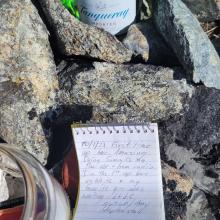 There is a memorial for a guy at the summit with plaque and someone left a full bottle of Tanquery Gin up there! :)