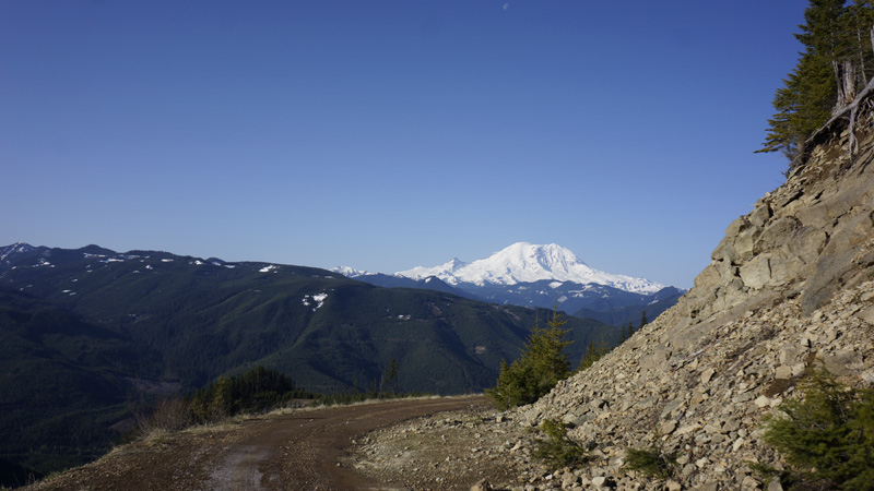 For the International SOTA Weekend I wanted some easy summit. Unfortunately this did not happen. I could not go near enough to the summit on forest roads. Got high centered and dug the car for an hour. After this I hiked somewhere around 10 miles total, but could not make up to the summit. The slope had a serious deep melt and i was suffering with snowshoes on also. I decided to turn around. For my Friday PTO I choose an easy summit. Well, it was two. Huckleberry Mountain and Divide Ridge. Both of them can be reached from forest roads with little hike. If I can drive up the same elevation than last week, then I have to hike much less than if I try Huckleberry Ridge again. At 0523 I am already in my car. Pop by a McDrive to get some calories and driving south from Seattle.