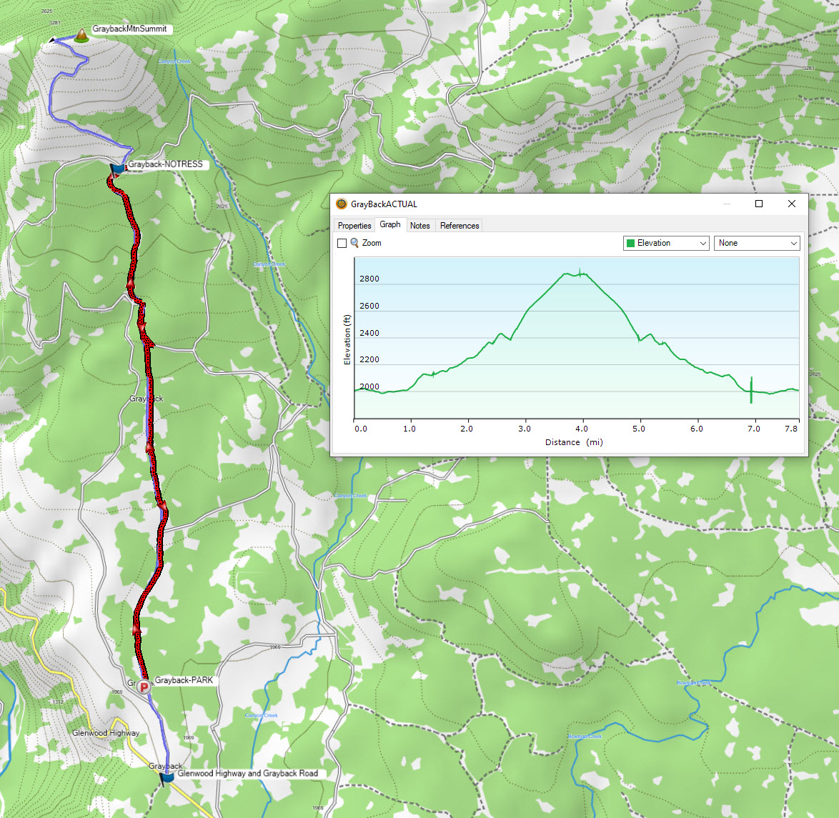 Although you can get a very pleasant eight mile RT hike in, the road/trail at the turnoff to access the summit of Grayback Mountain is signed with very clear No Trespassing signage. I contacted the website owner for wa fire lookouts and asked him to update his site.